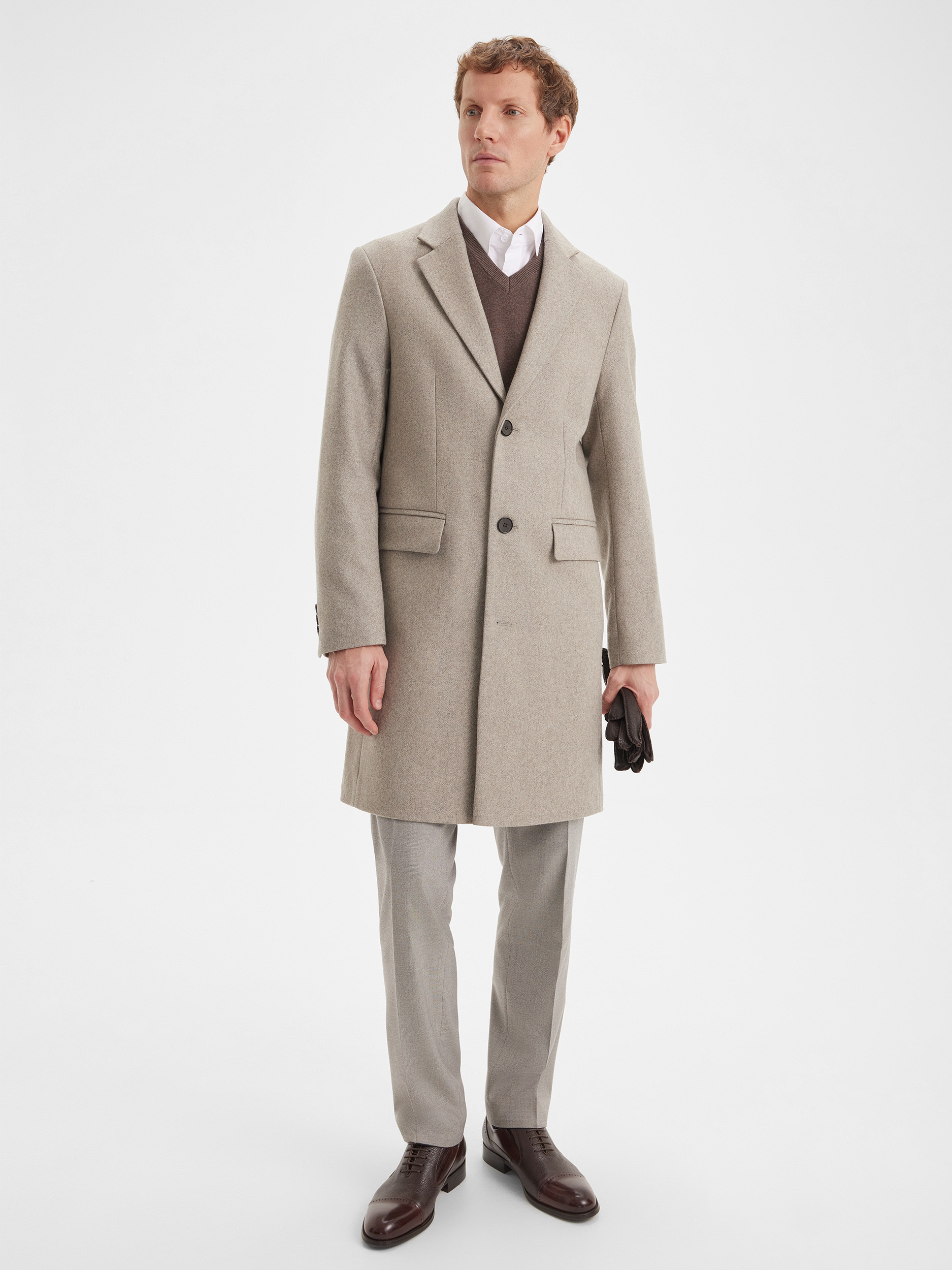 Мужское пальто SINAR выполнено в светло-бежевом цвете с аккуратным микродизайном и приталенным силуэтом, создавая современный и элегантный образ. Шерстяная ткань обеспечивает тепло, комфорт и долговечность, позволяя пальто сохранять форму и аккуратный вид на протяжении многих сезонов. Однобортная застёжка подчёркивает строгий и стильный характер модели, делая её универсальной для офиса и повседневного гардероба.