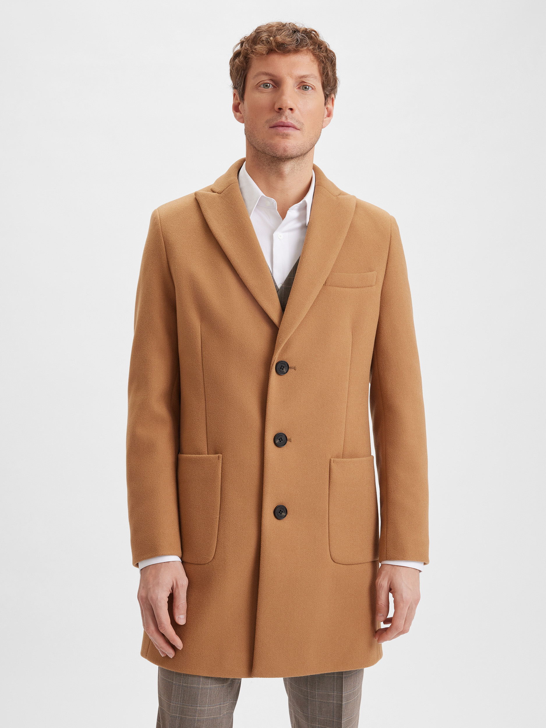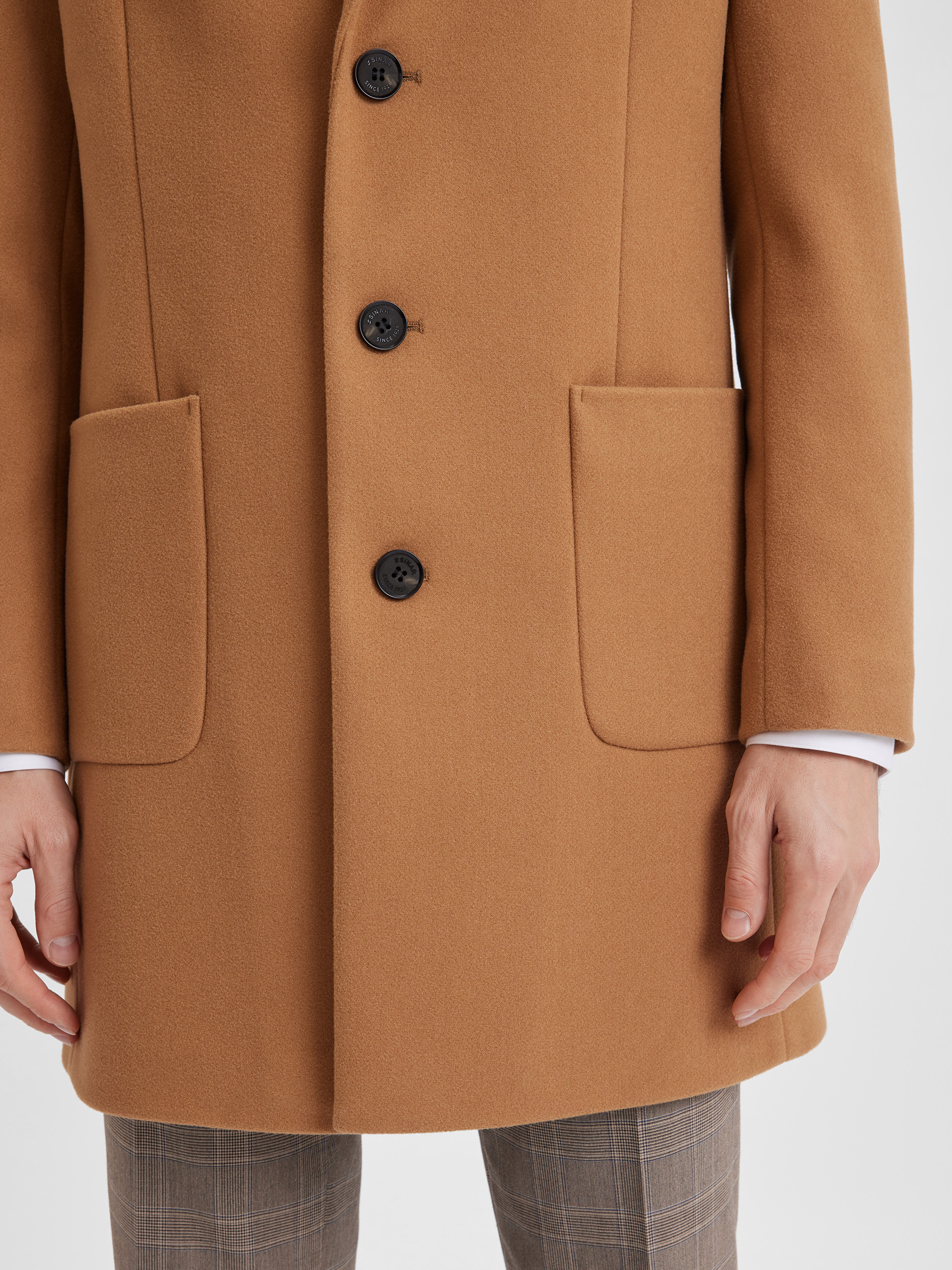 Мужское пальто SINAR. Модель с накладными карманами и одной шлицей. Пальто выполнено из высокотехнологичной мягкой, теплой ткани модного оттенка. Контрастные пуговицы служат небольшим акцентом и добавляют особый шик изделию. Крой, оптимальная длина, детали и базовый цвет делают вещь не только стильным, но универсальным решением для мужского гардероба. Создать полный аутфит вы можете в нашем разделе "Дополнить образ".