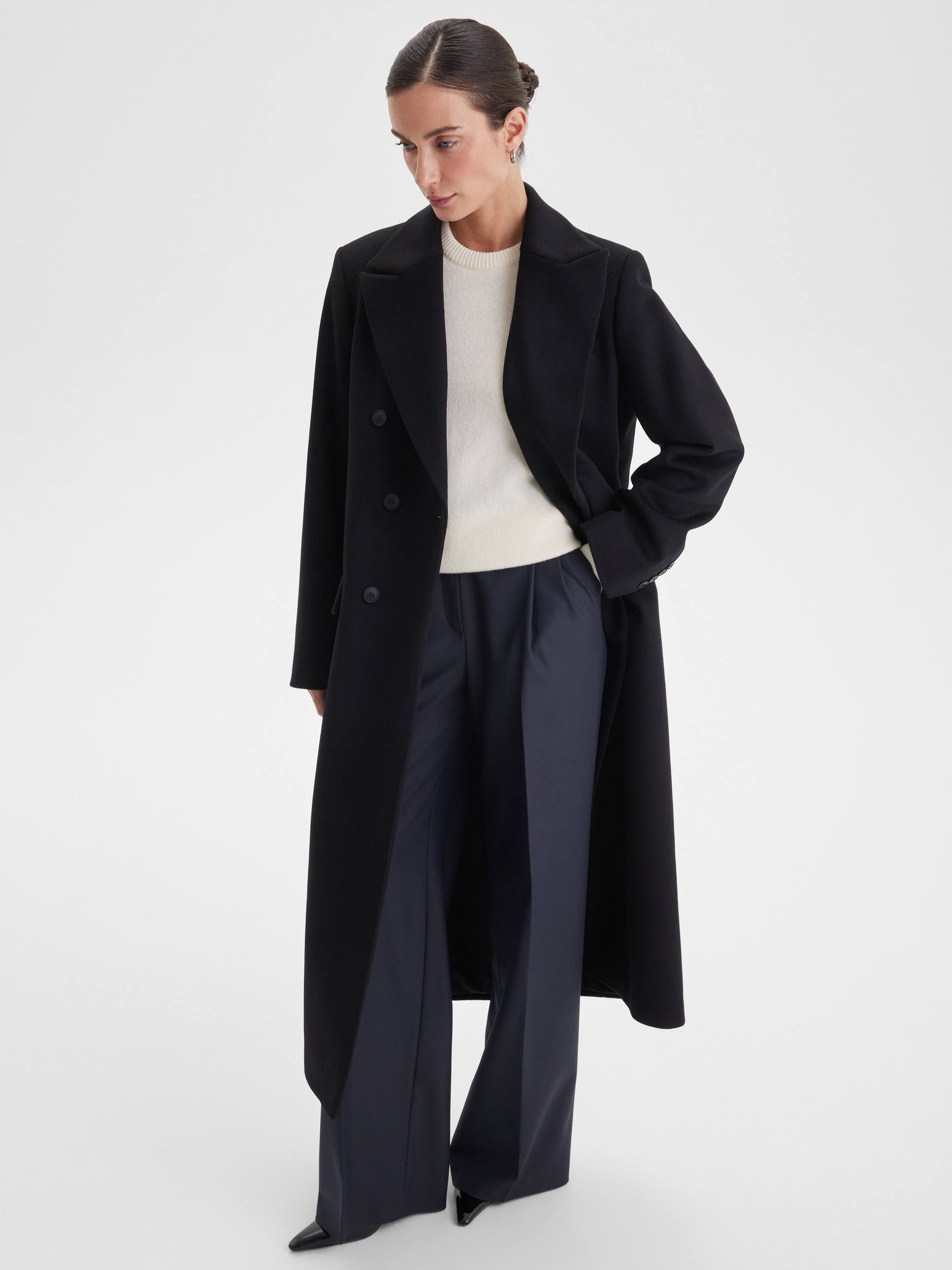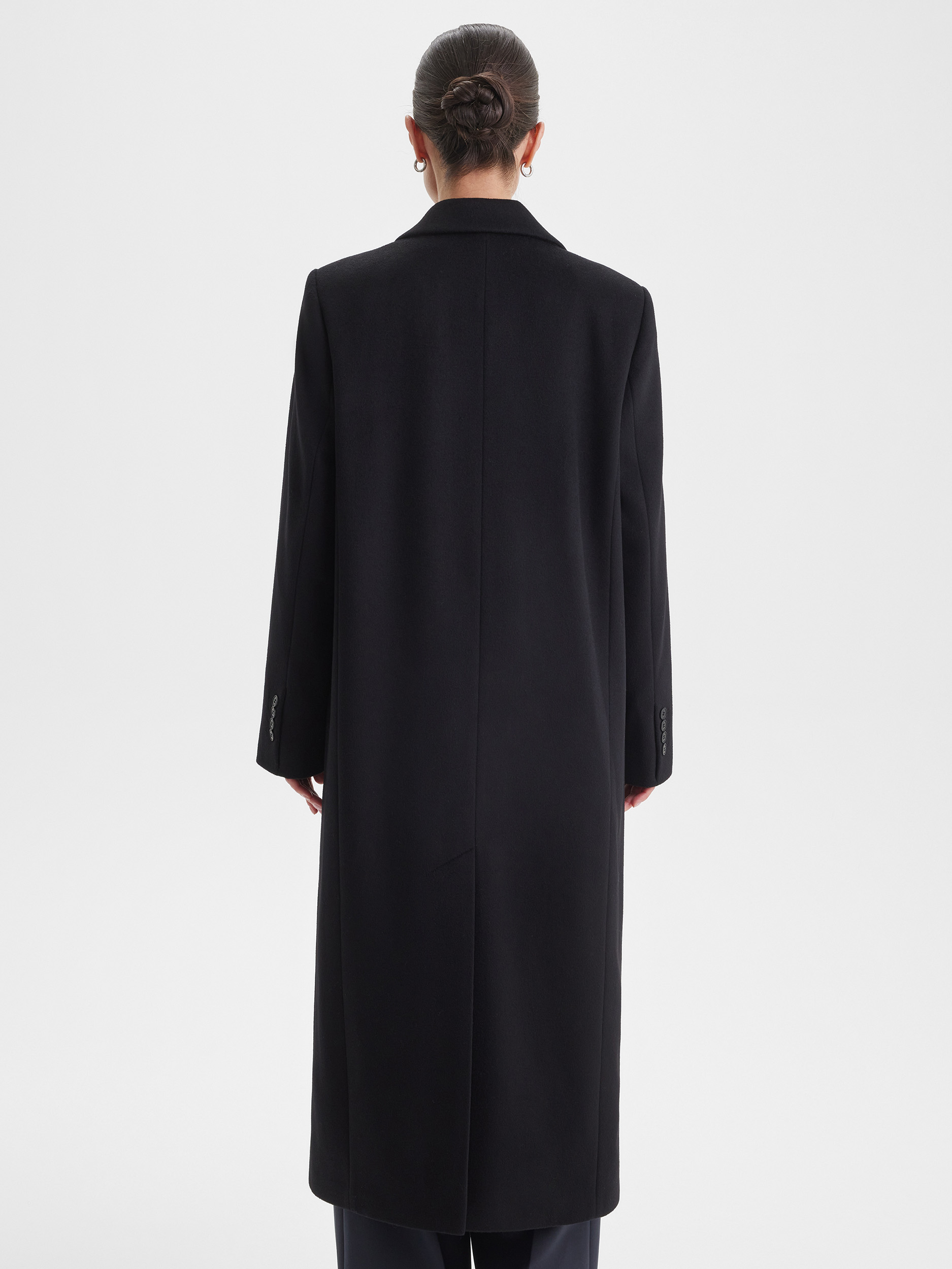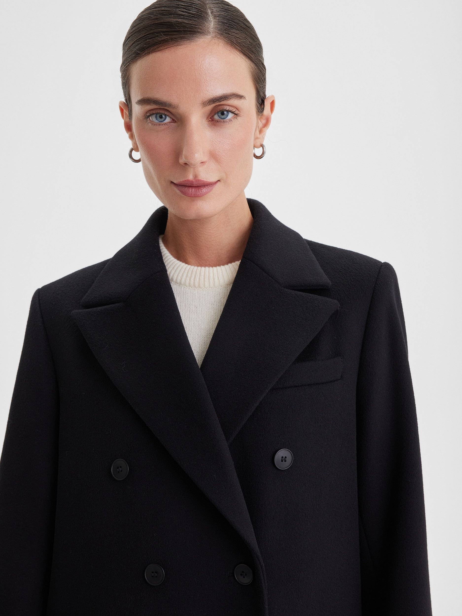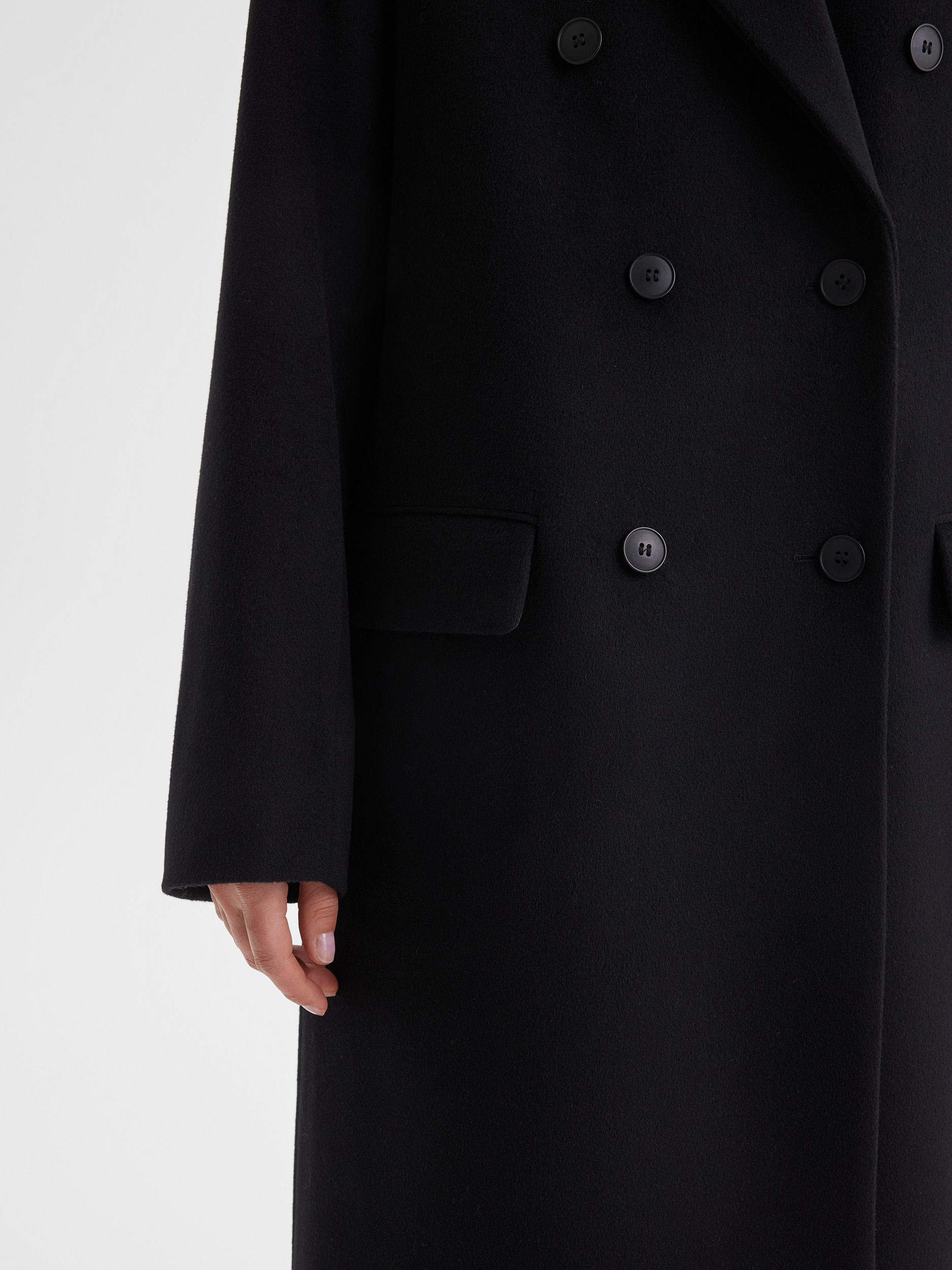Двубортное пальто с содержанием натуральной шерсти обладает отличными теплоизоляционными свойствами, комфортно на ощупь и долговечно. Модель сочетает современный объёмный силуэт с классической элегантностью двубортного кроя, отвечая актуальным тенденциям и обеспечивая комфорт в носке. Пальто сохраняет форму и первоначальный внешний вид на протяжении длительного времени.