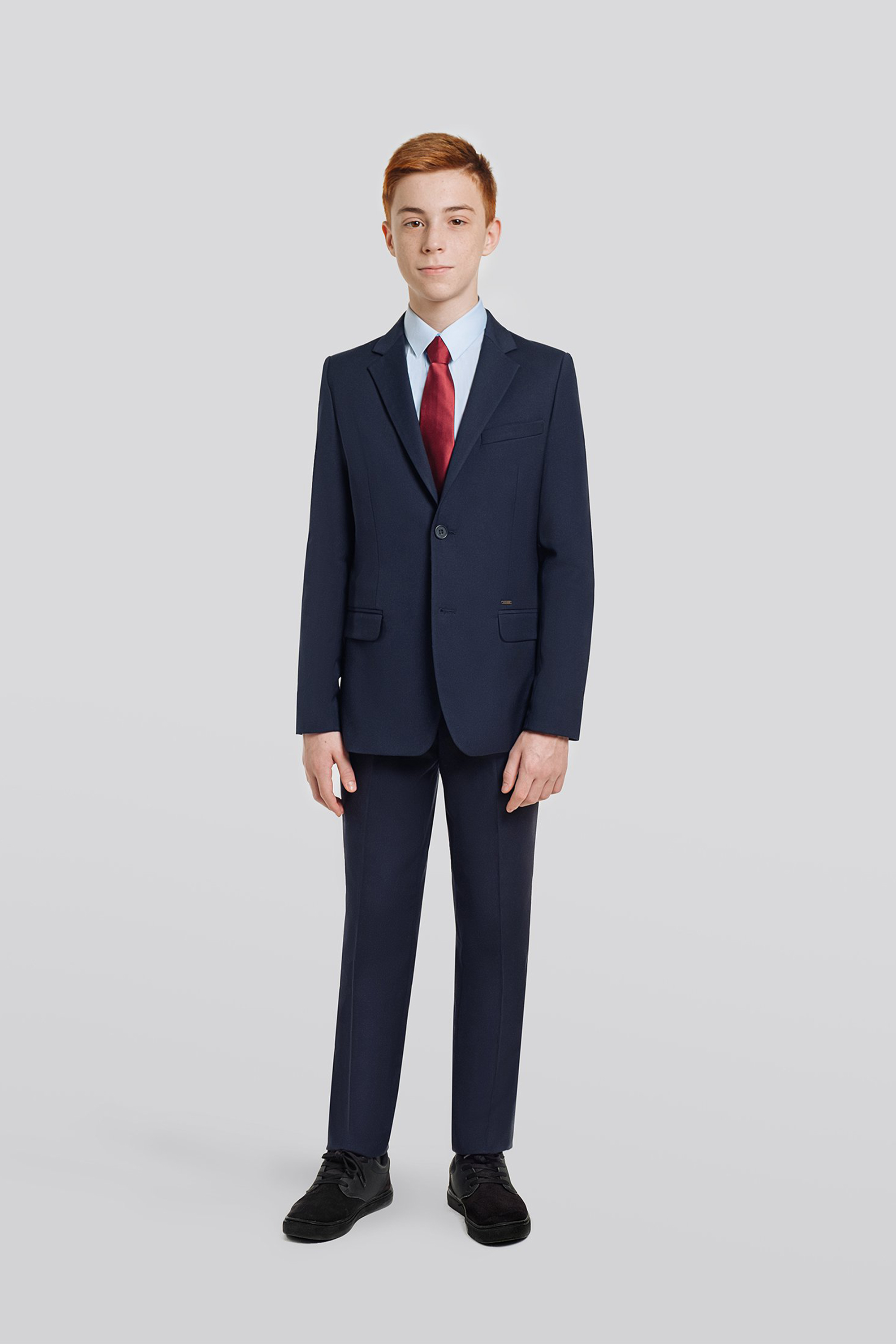 Школьный пиджак прямого кроя силуэта REGULAR сшит из практичной вискозной ткани, внутри тонкая подкладка. Застежка на двух пуговицах, английский воротник с острым лацканом. Парные карманы с клапанами по бокам, две шлицы по спинке.