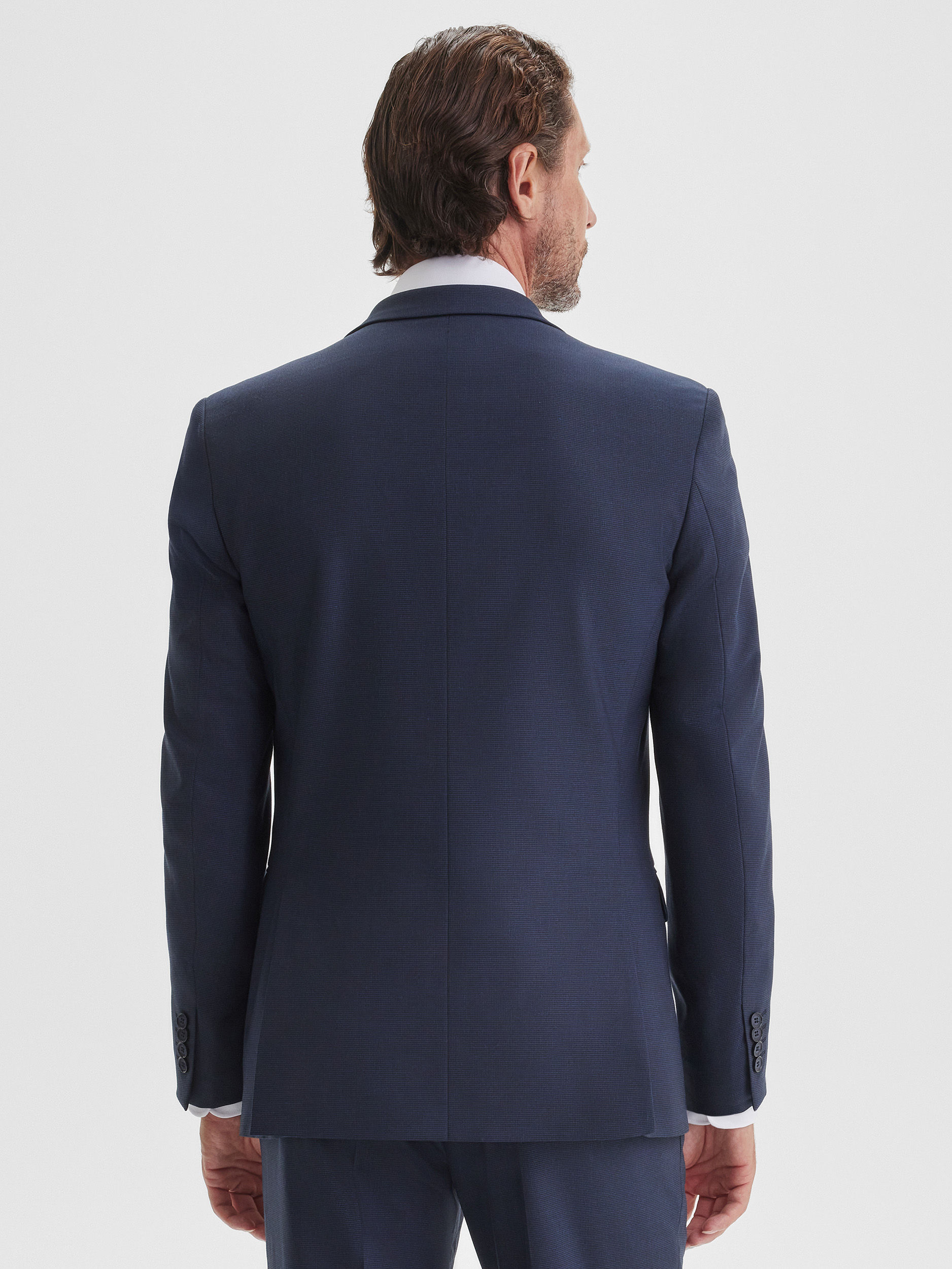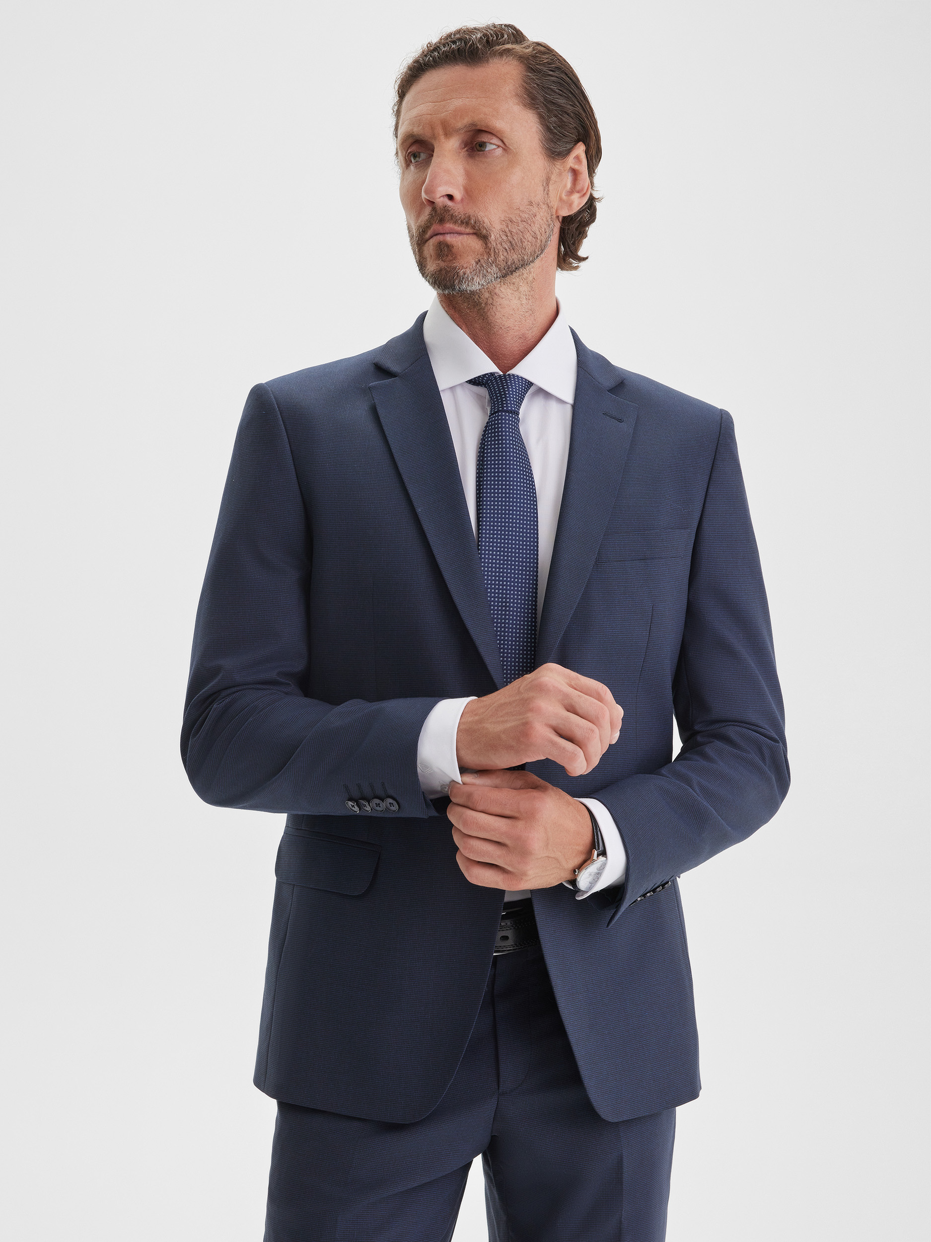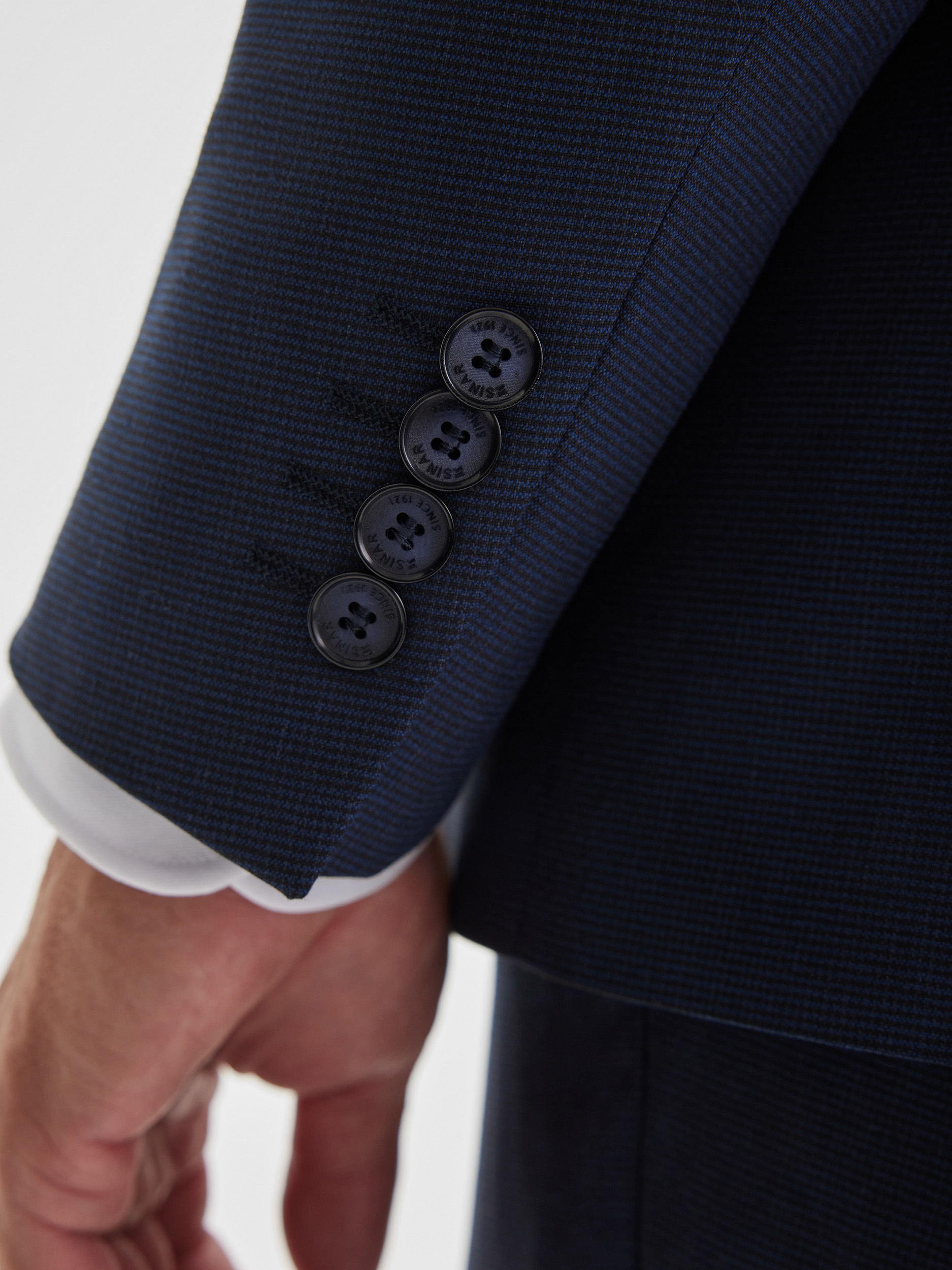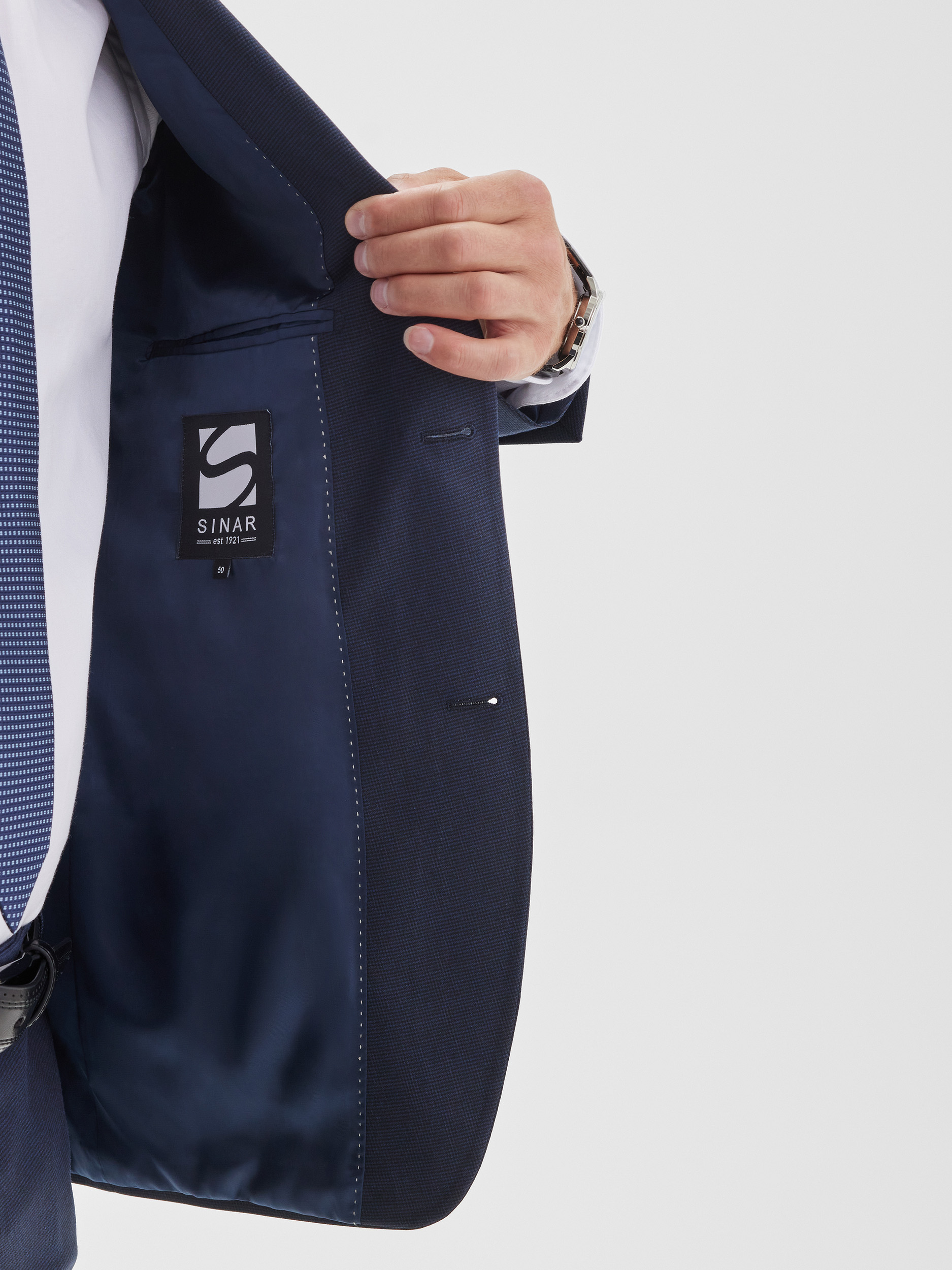 Классический пиджак силуэта Regular, выполненный из ткани с содержанием шерсти и изысканным микродизайном пье-де-пуль. Благодаря универсальному темно-синему оттенку и деликатному рисунку модель подчеркивает статусность и элегантность образа. Пиджак хорошо держит форму, удобен в носке и уместен как для рабочих встреч, так и для официальных мероприятий.