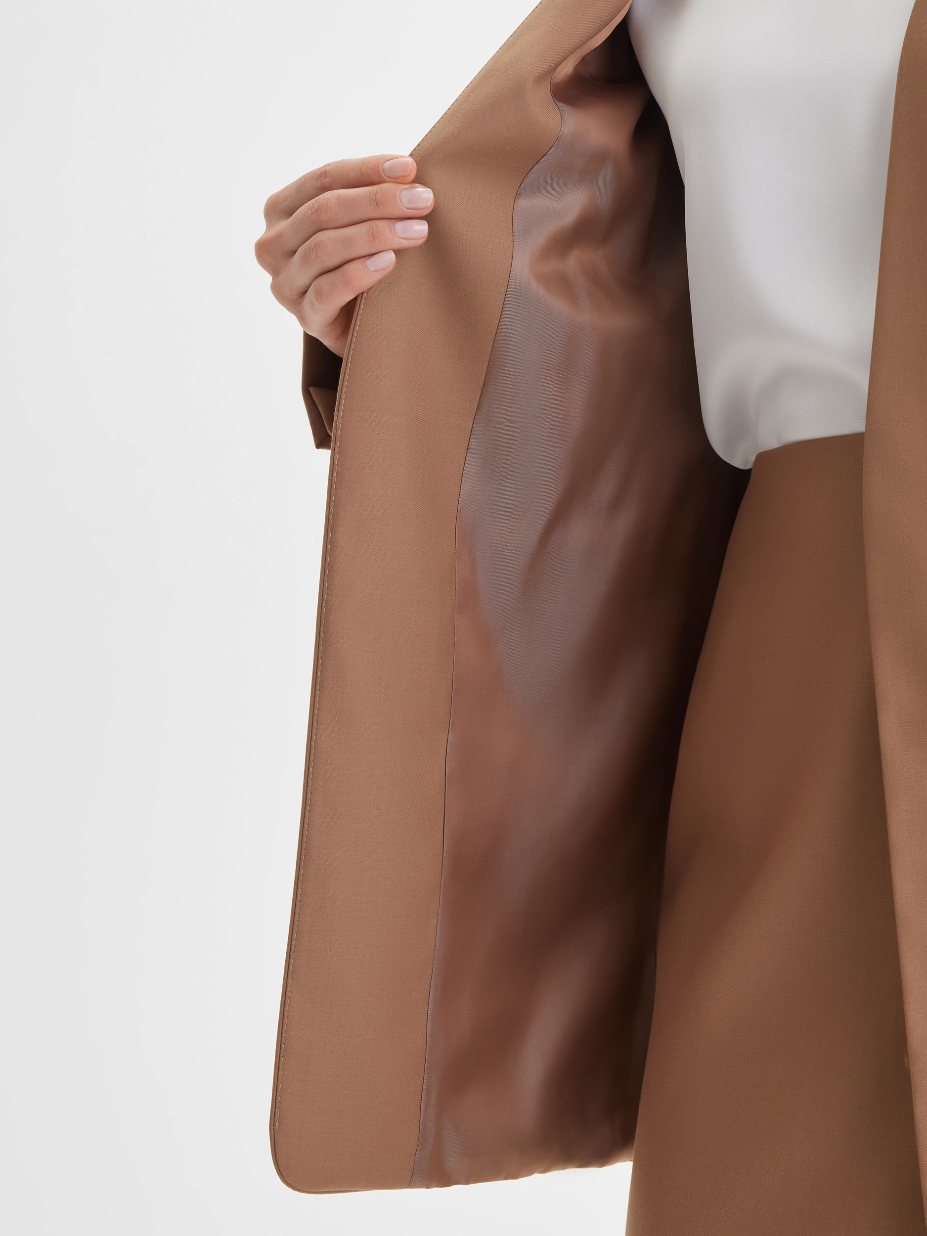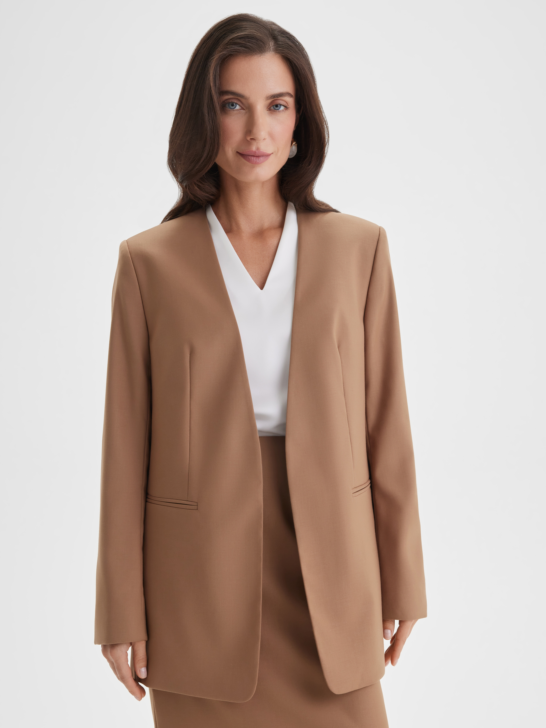 Жакет тёплого золотисто-карамельного оттенка, напоминающего солнечные осенние дни. Богатый цвет в сочетании с элегантным кроем создаёт образ, подходящий как для важных мероприятий, так и для повседневной носки.