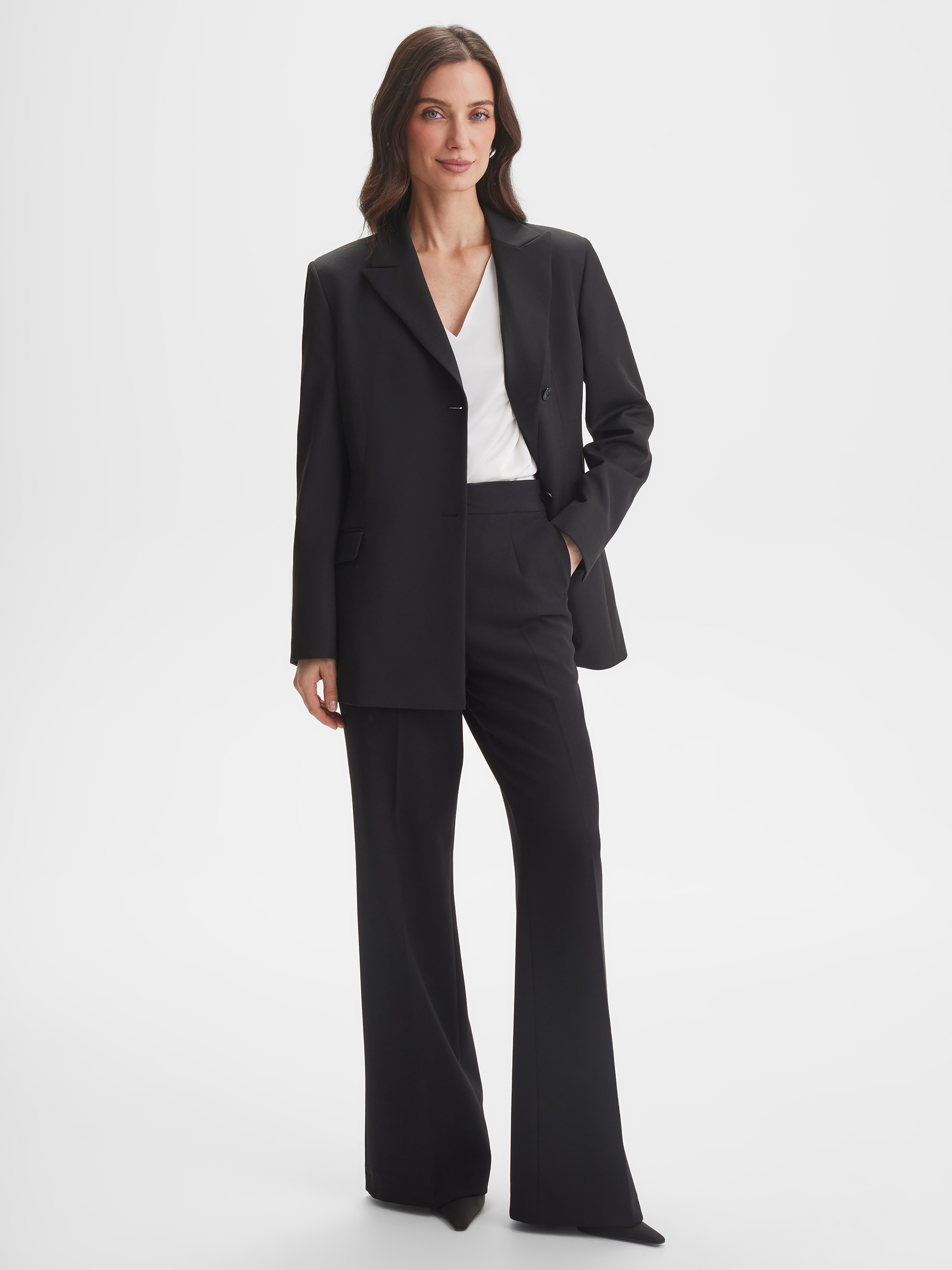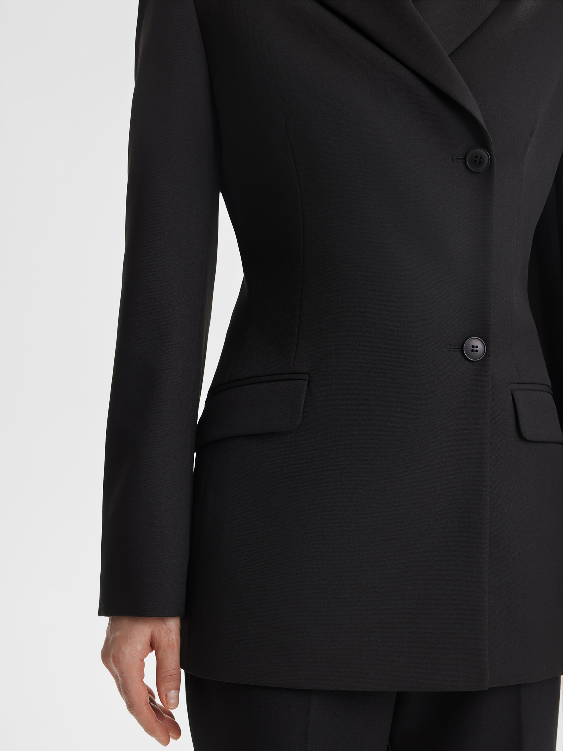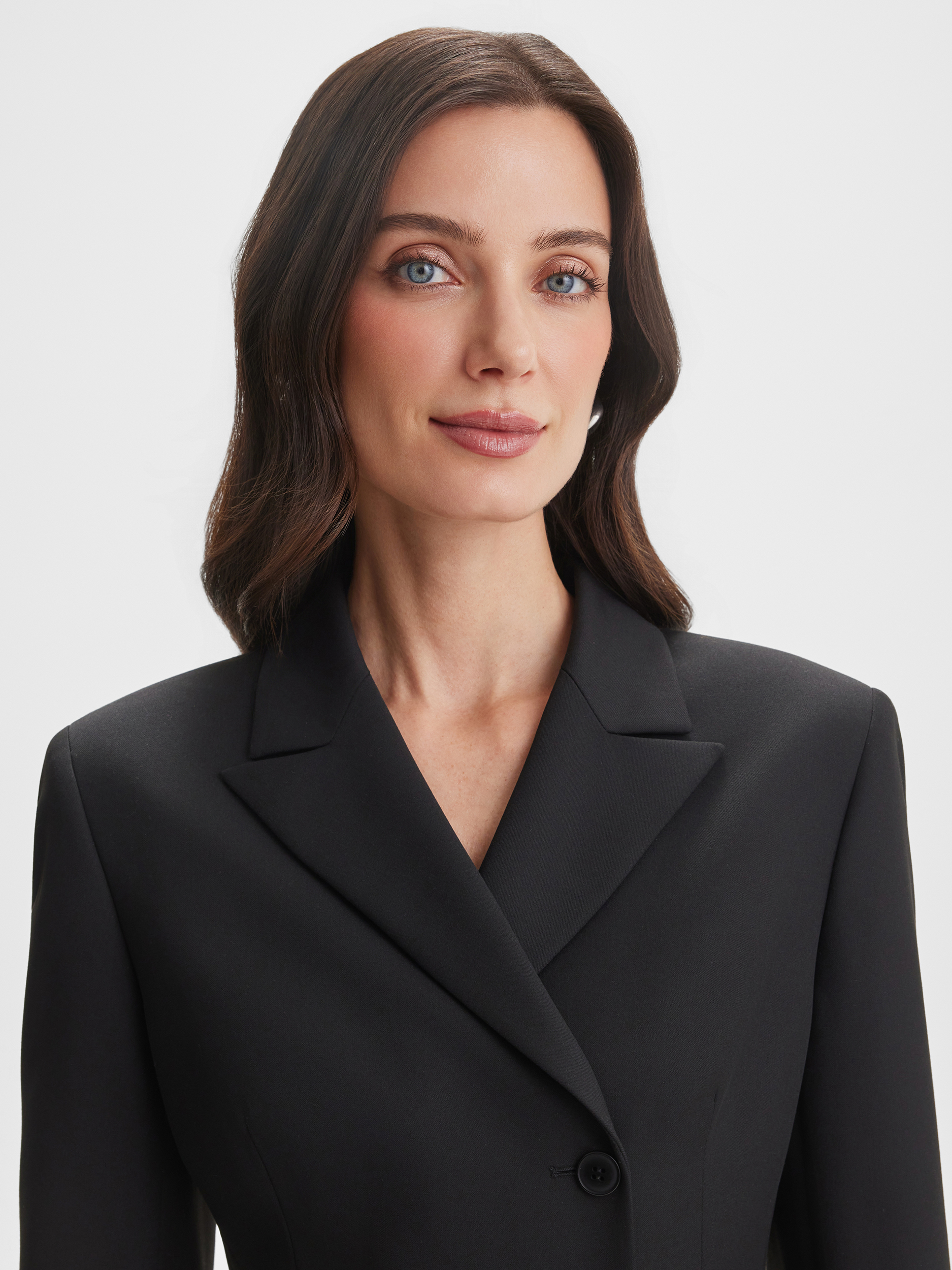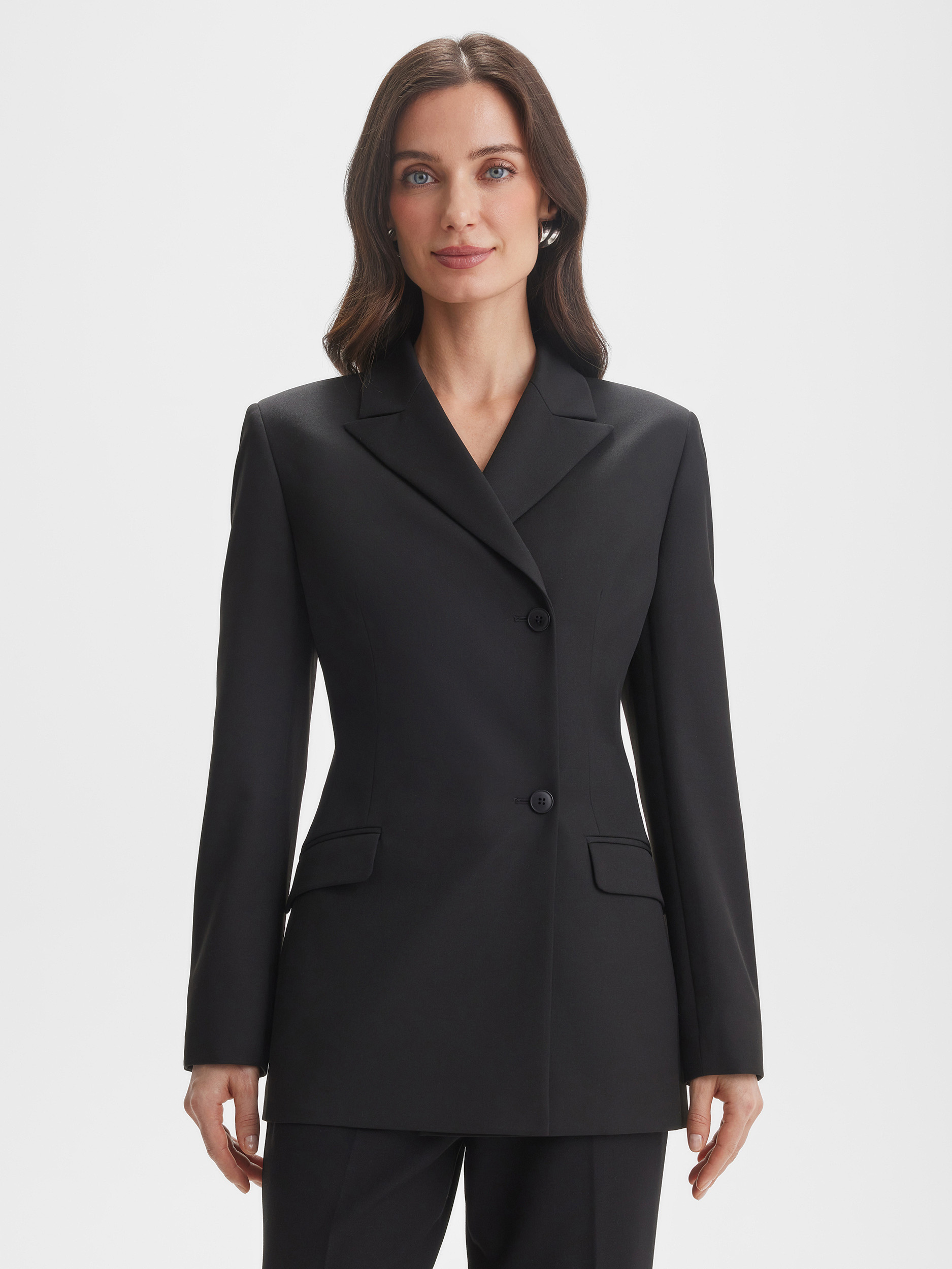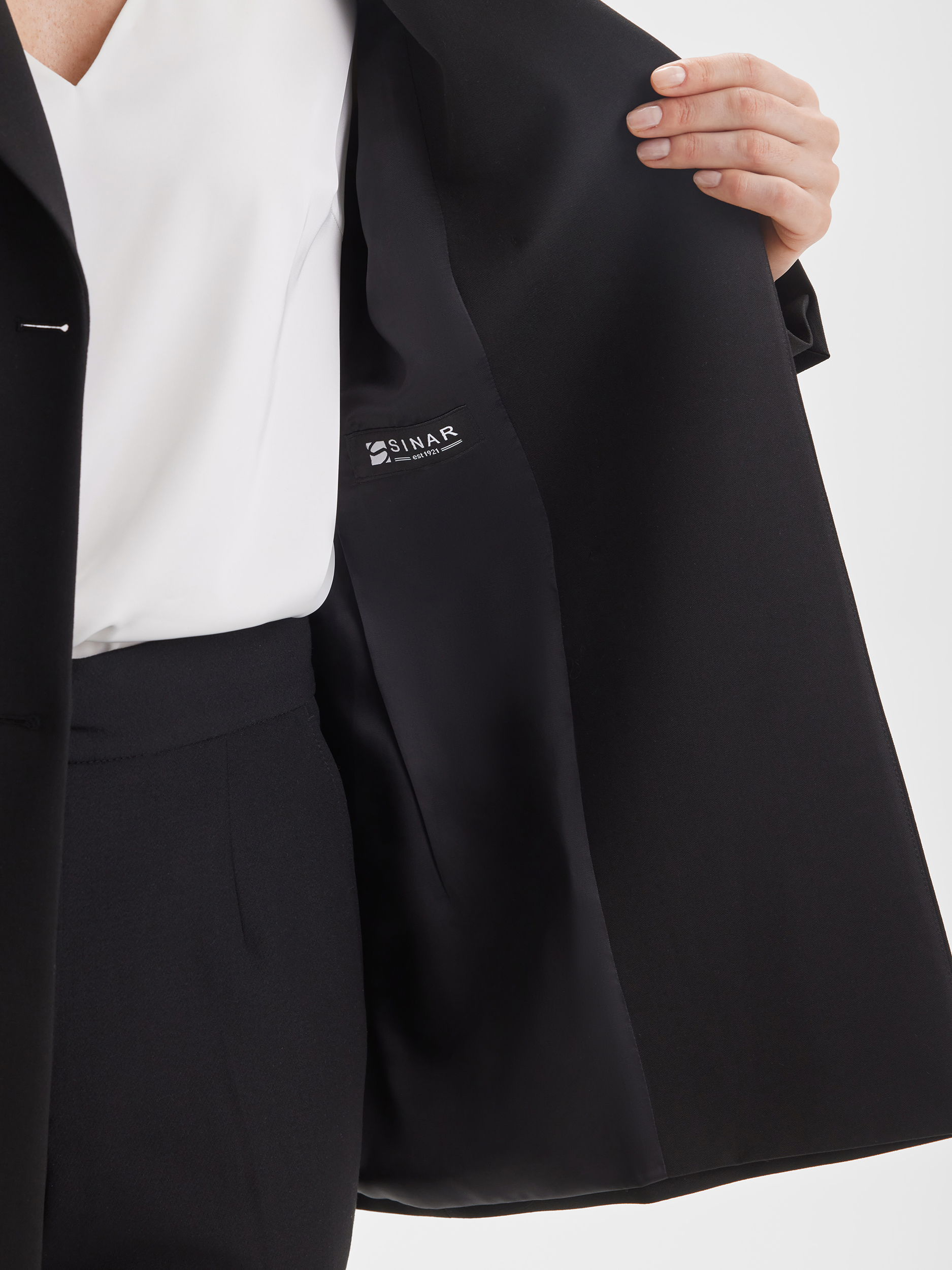 Приталенный жакет SINAR в базовом чёрном цвете — воплощение элегантной классики. Маленький воротник и однорядные пуговицы подчёркивают изящность линии шеи и создают строгий, аккуратный силуэт. Модель универсальна: подходит как для офисных комплектов, так и для вечерних образов, подчёркивая стройность фигуры.
