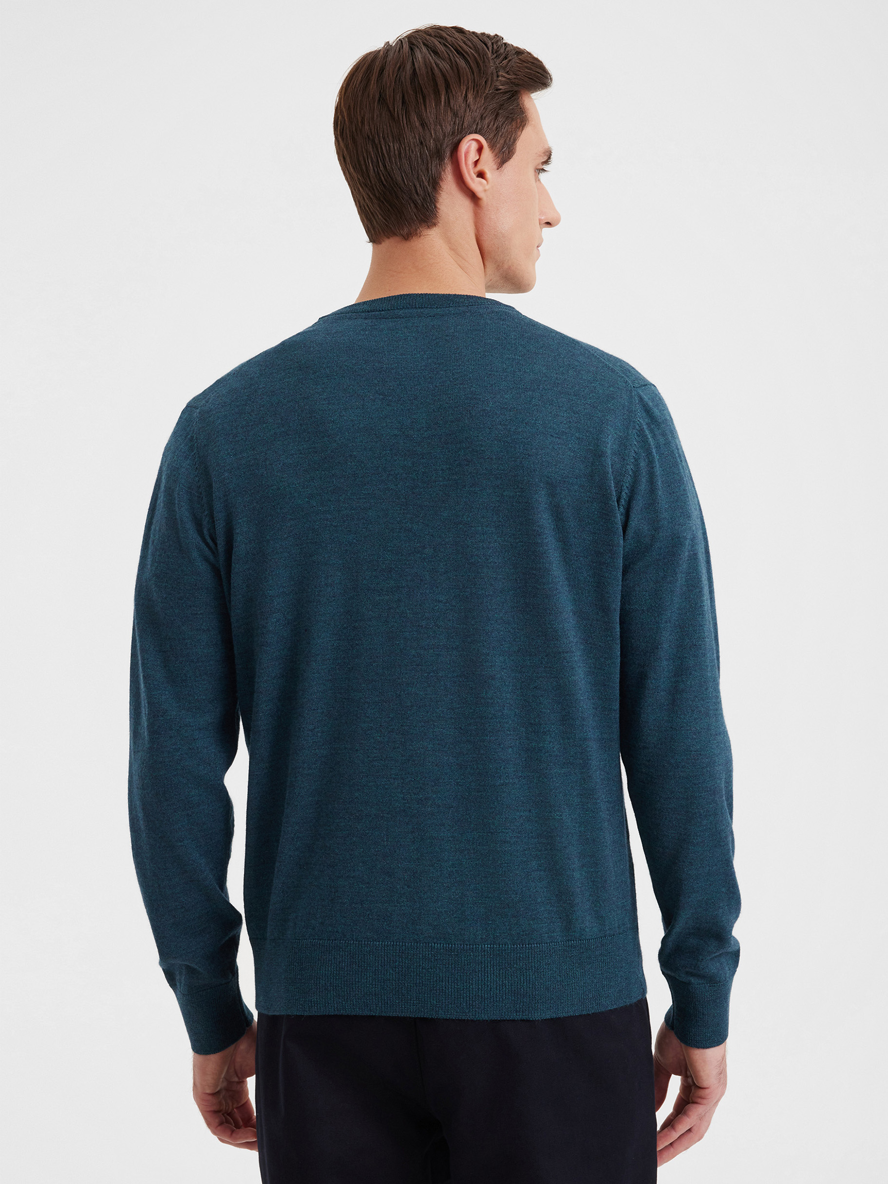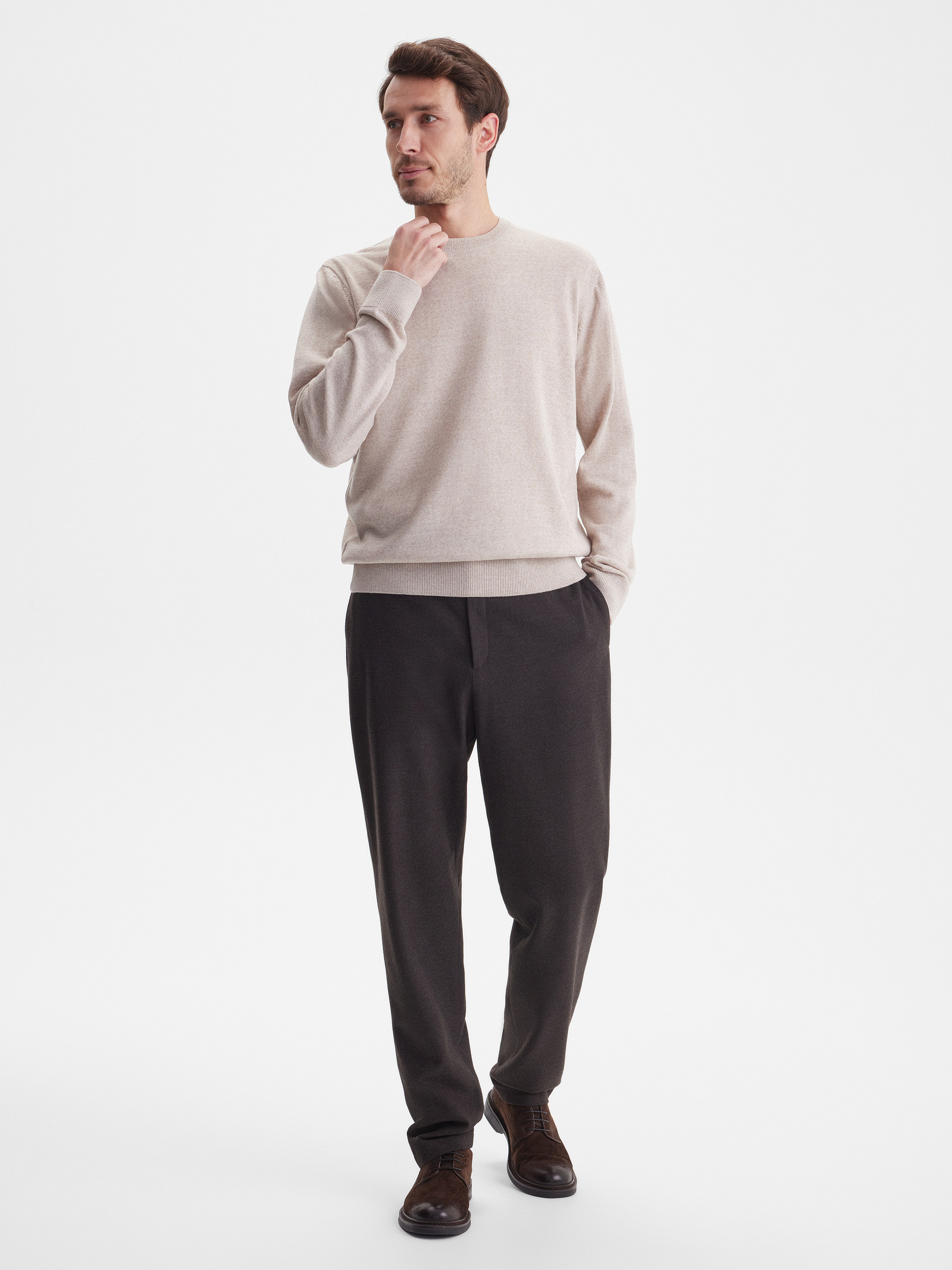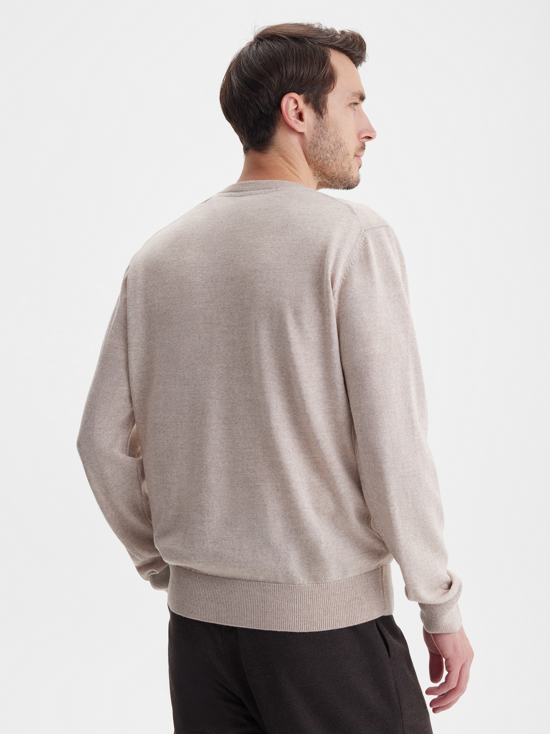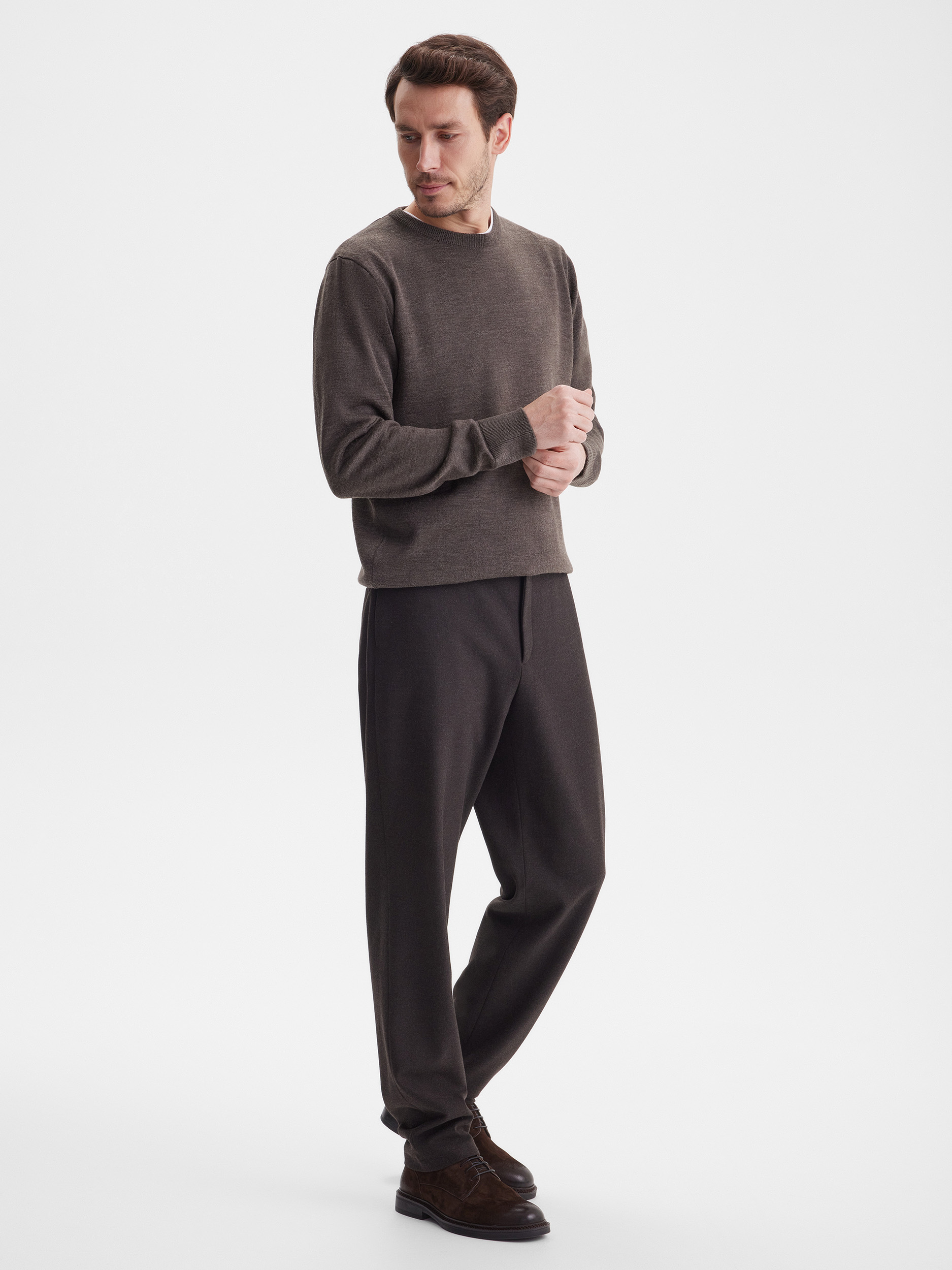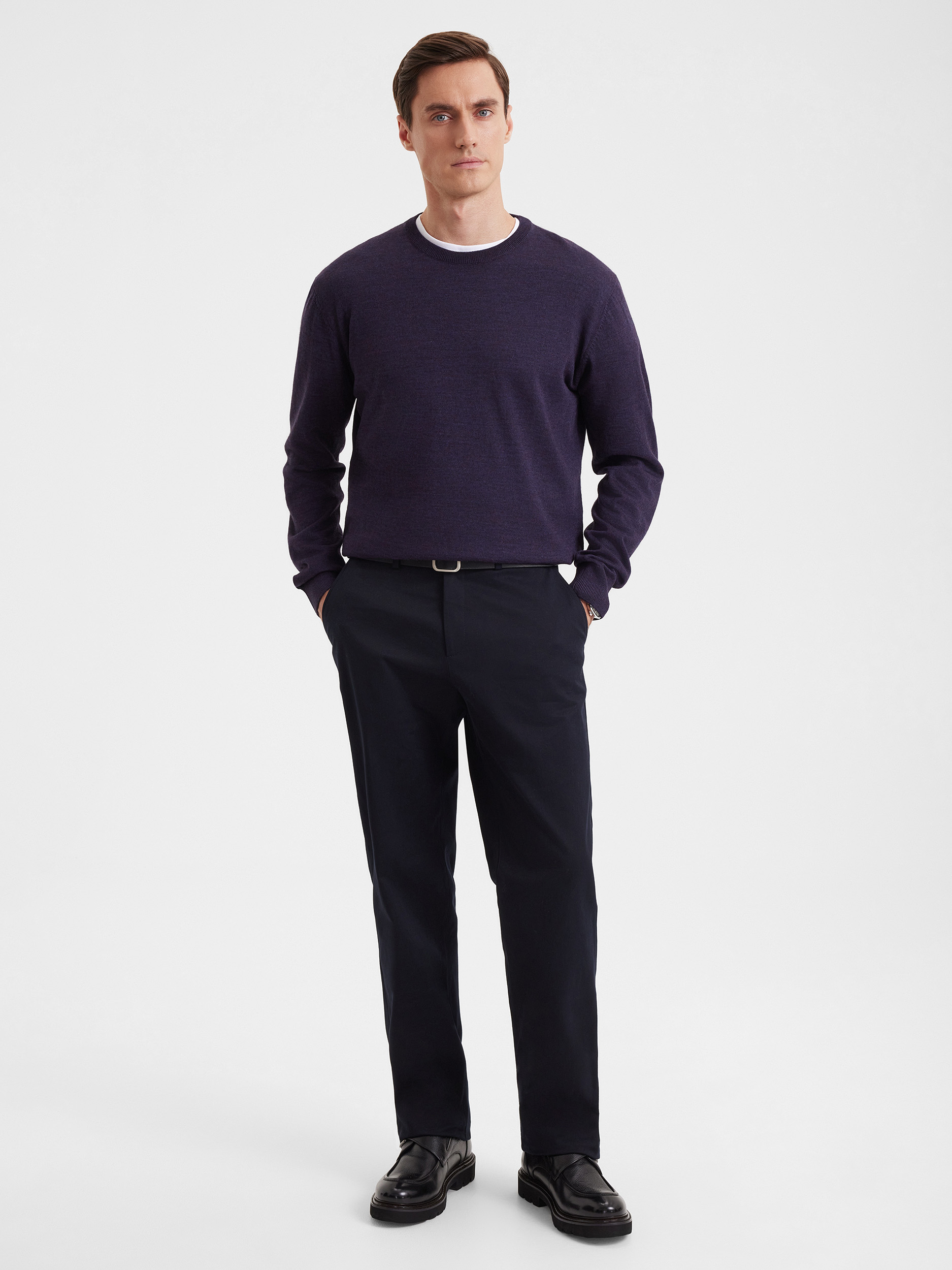 Тонкий класический джемпер из смесового трикотажа. В составе тонкая шерсть мериносовых овец и акрил. Круглый вырез, прямой рукав. Универсальная модель в урбанистическом стиле, базовая вещь для создания стильных повседневных аутфитов для офиса, прогулок и путешествий.