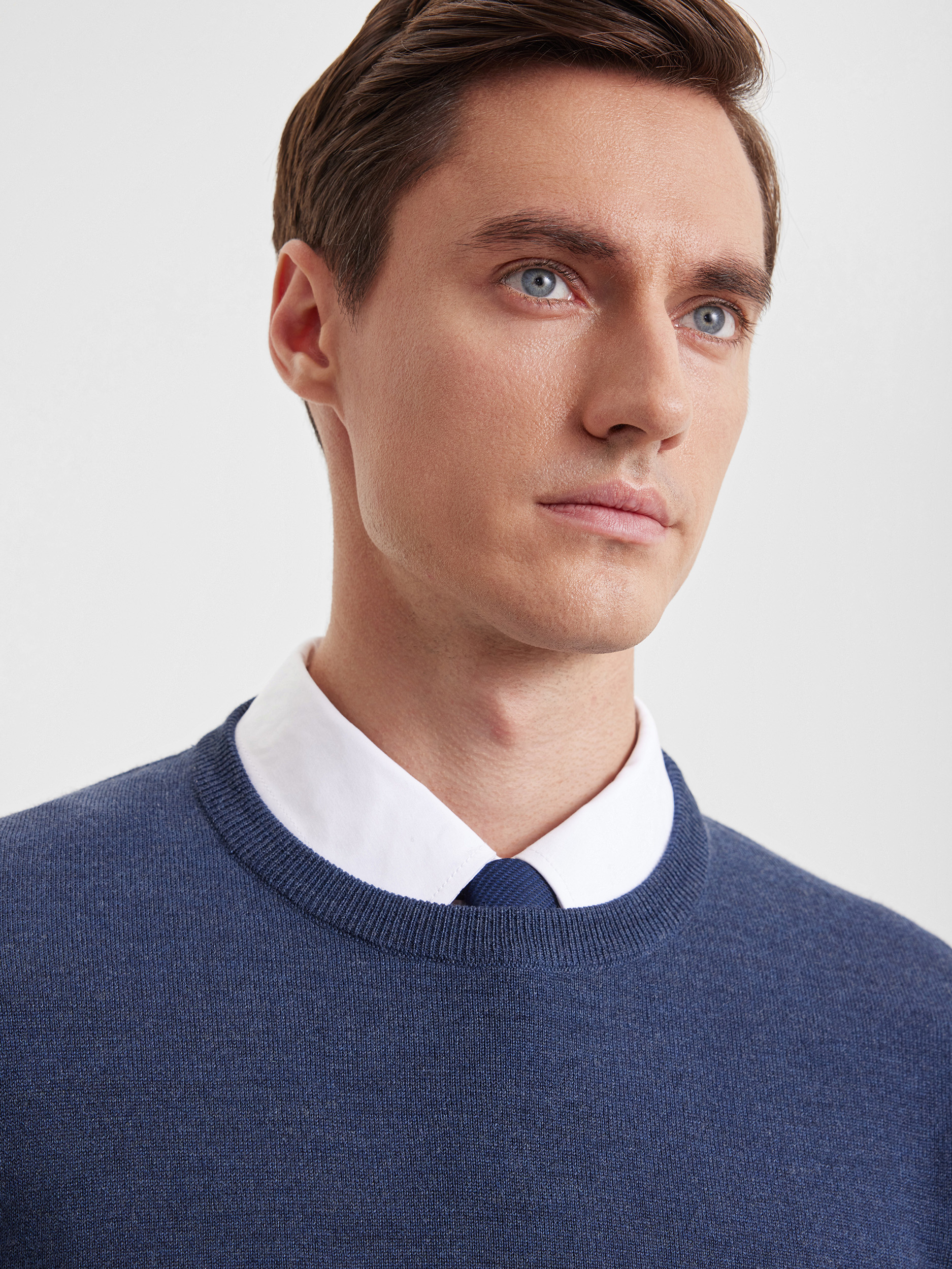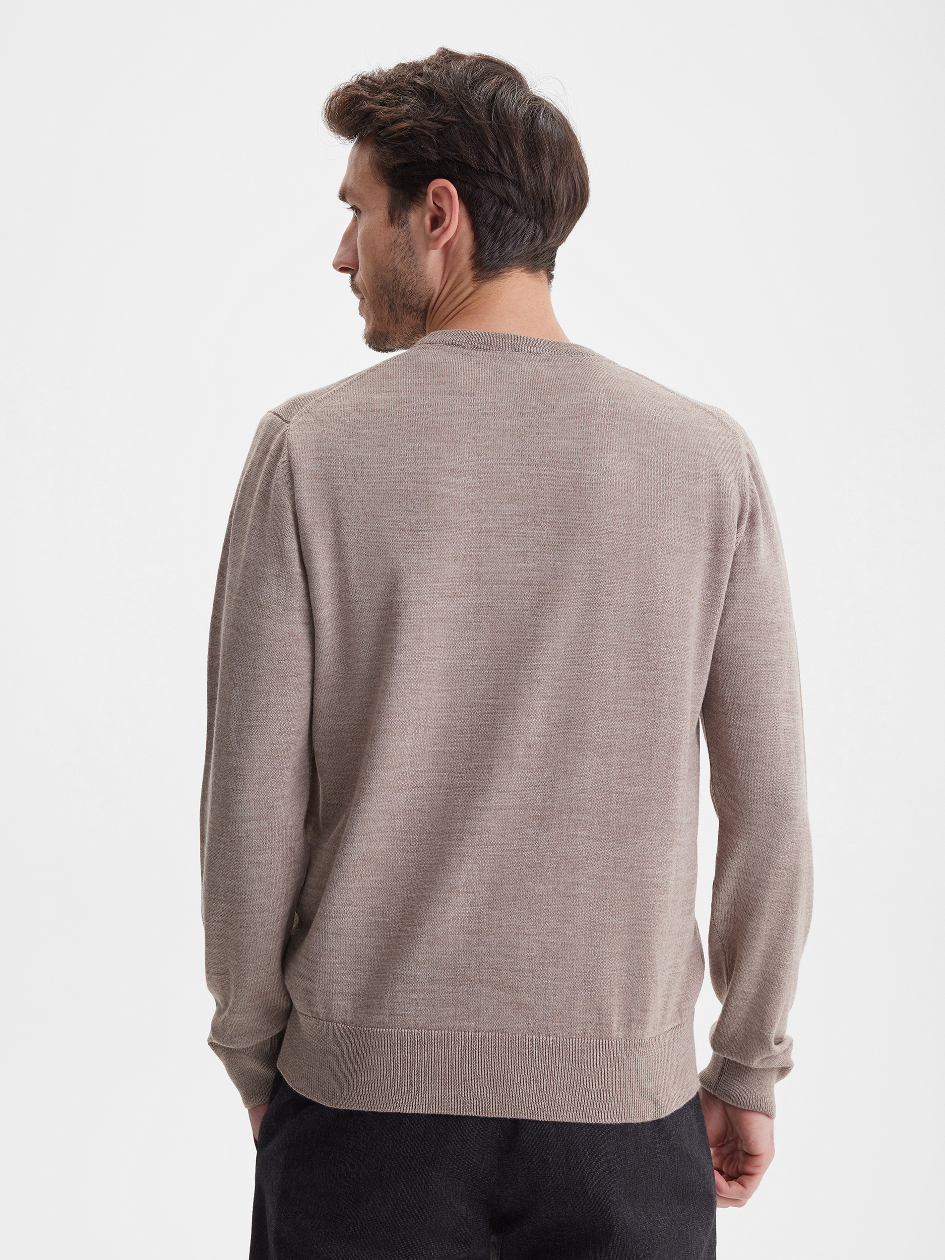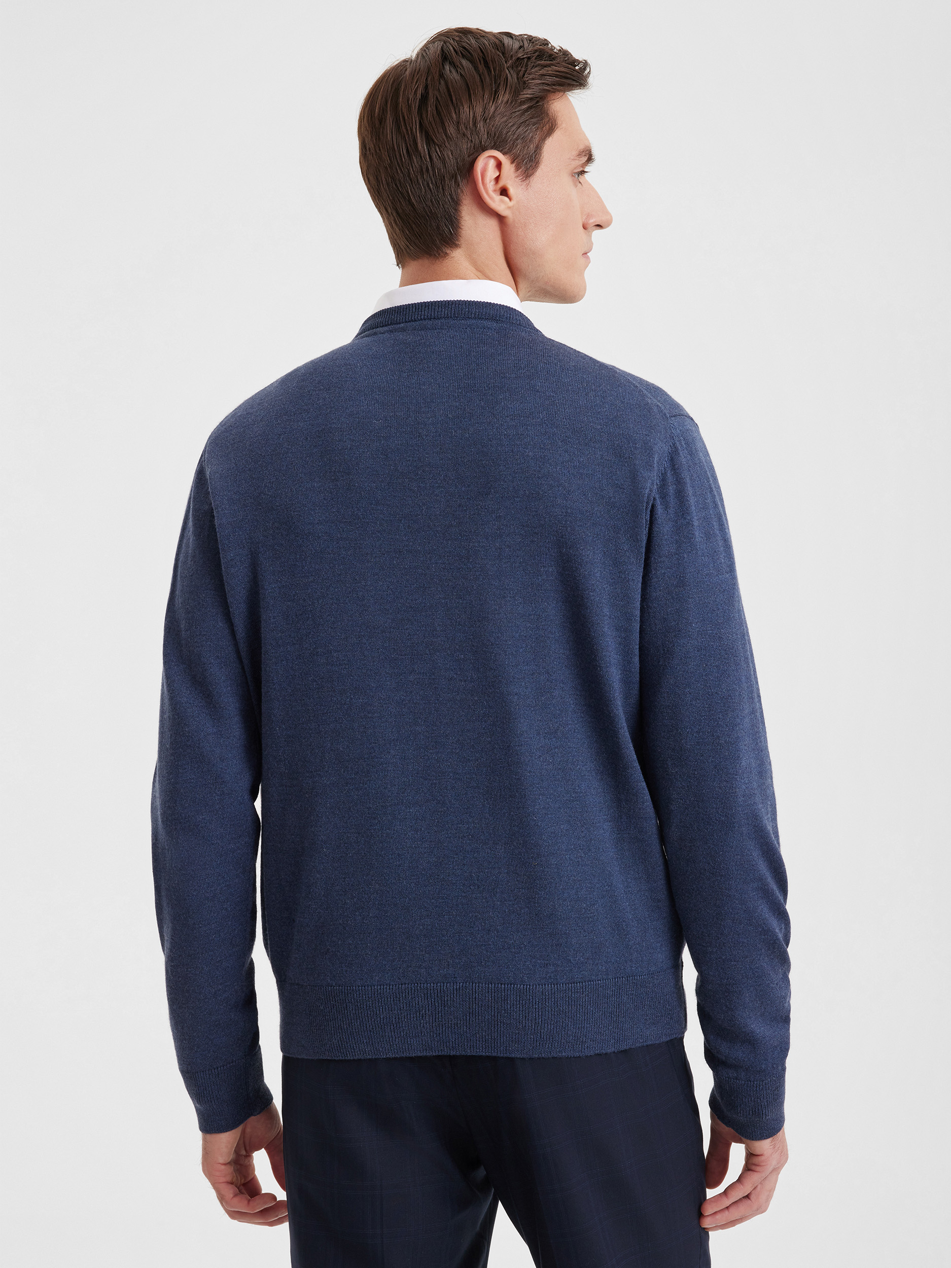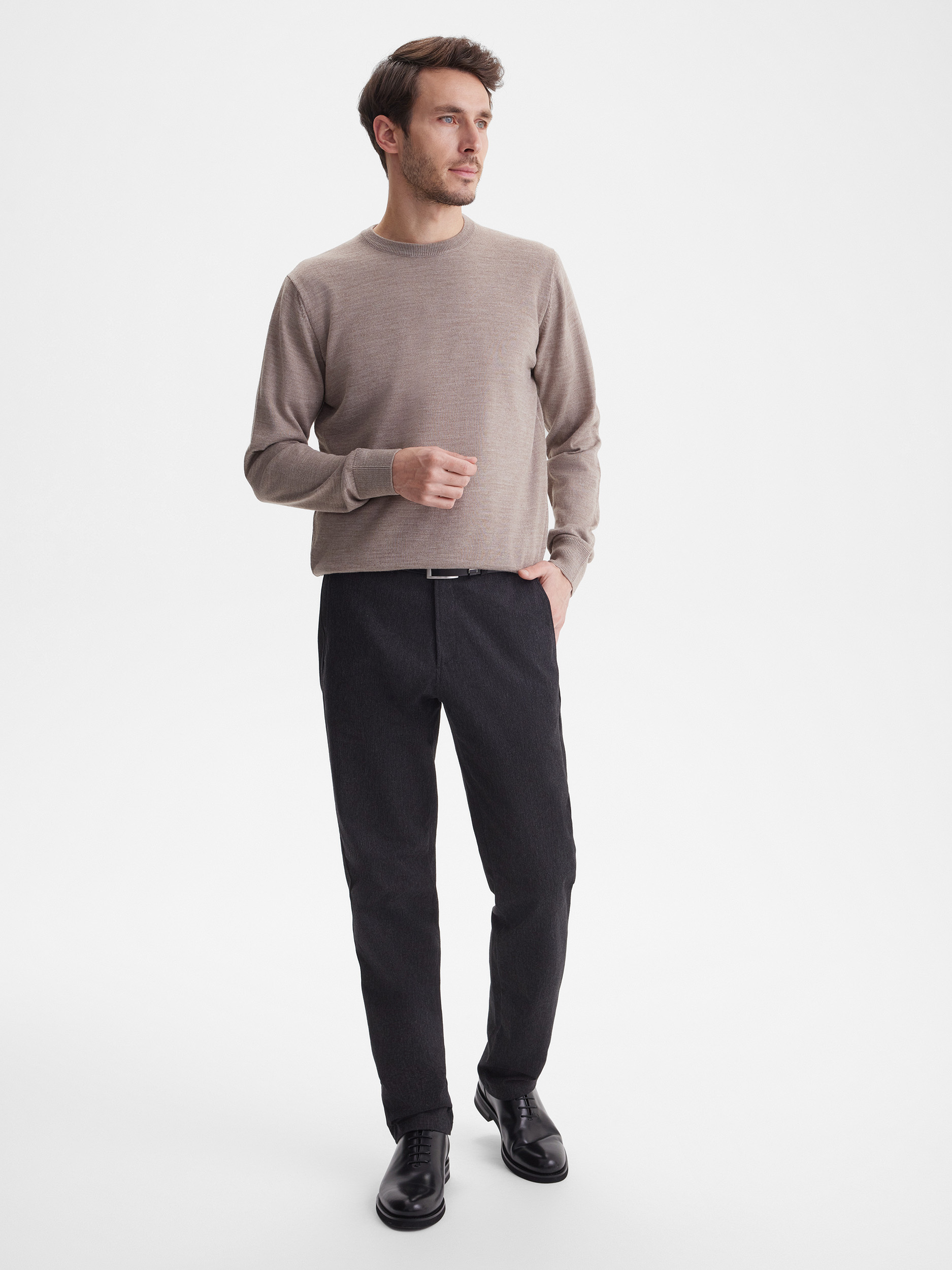 Тонкий класический джемпер из смесового трикотажа. В составе тонкая шерсть мериносовых овец и акрил. Круглый вырез, прямой рукав. Универсальная модель в урбанистическом стиле, базовая вещь для создания стильных повседневных аутфитов для офиса, прогулок и путешествий.