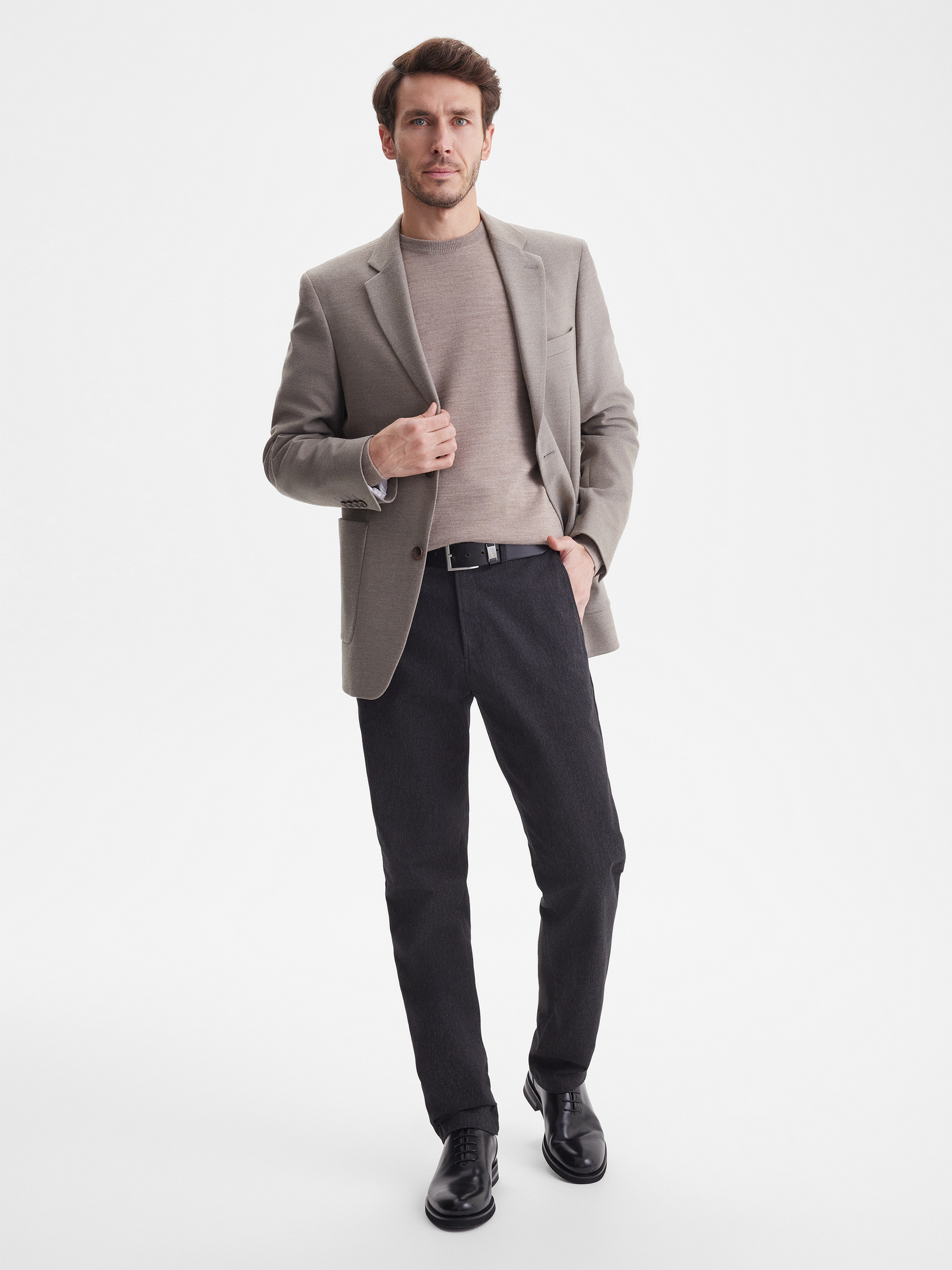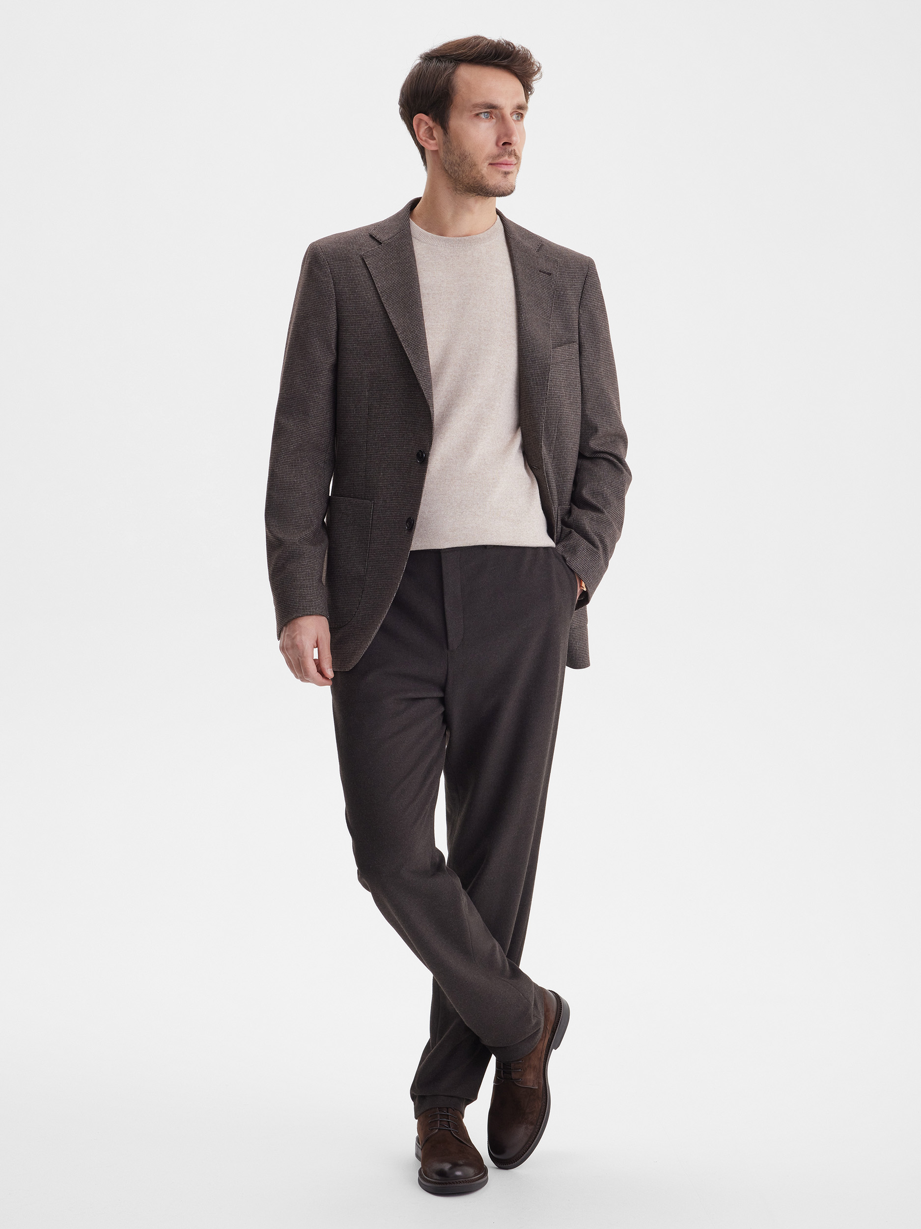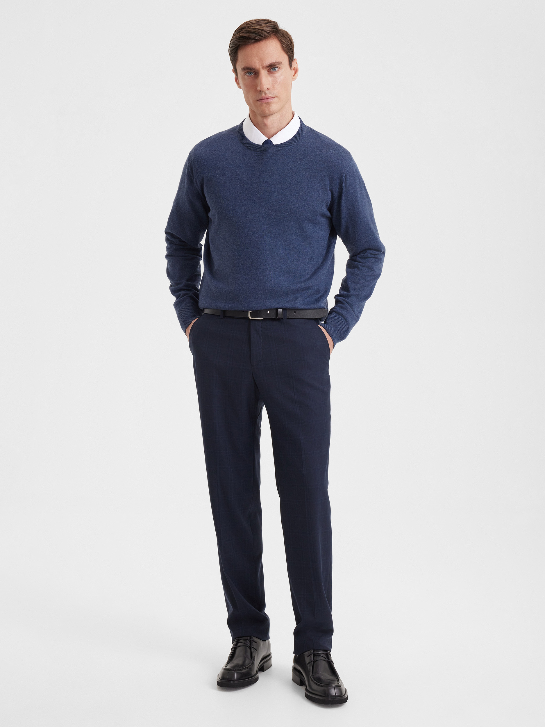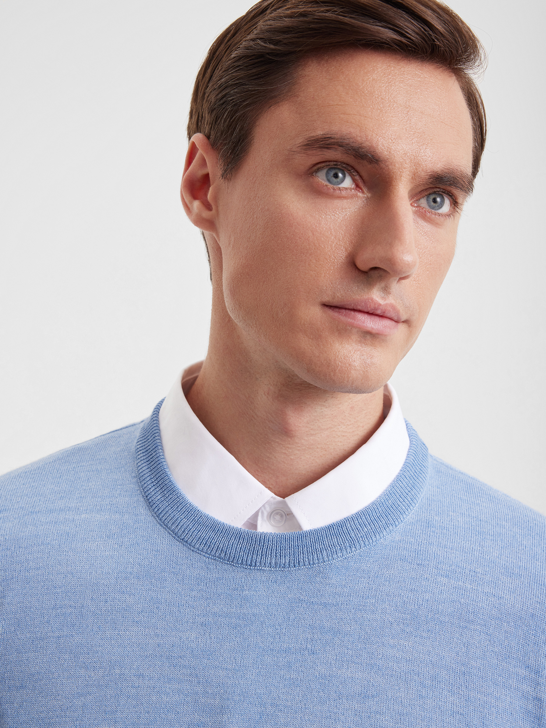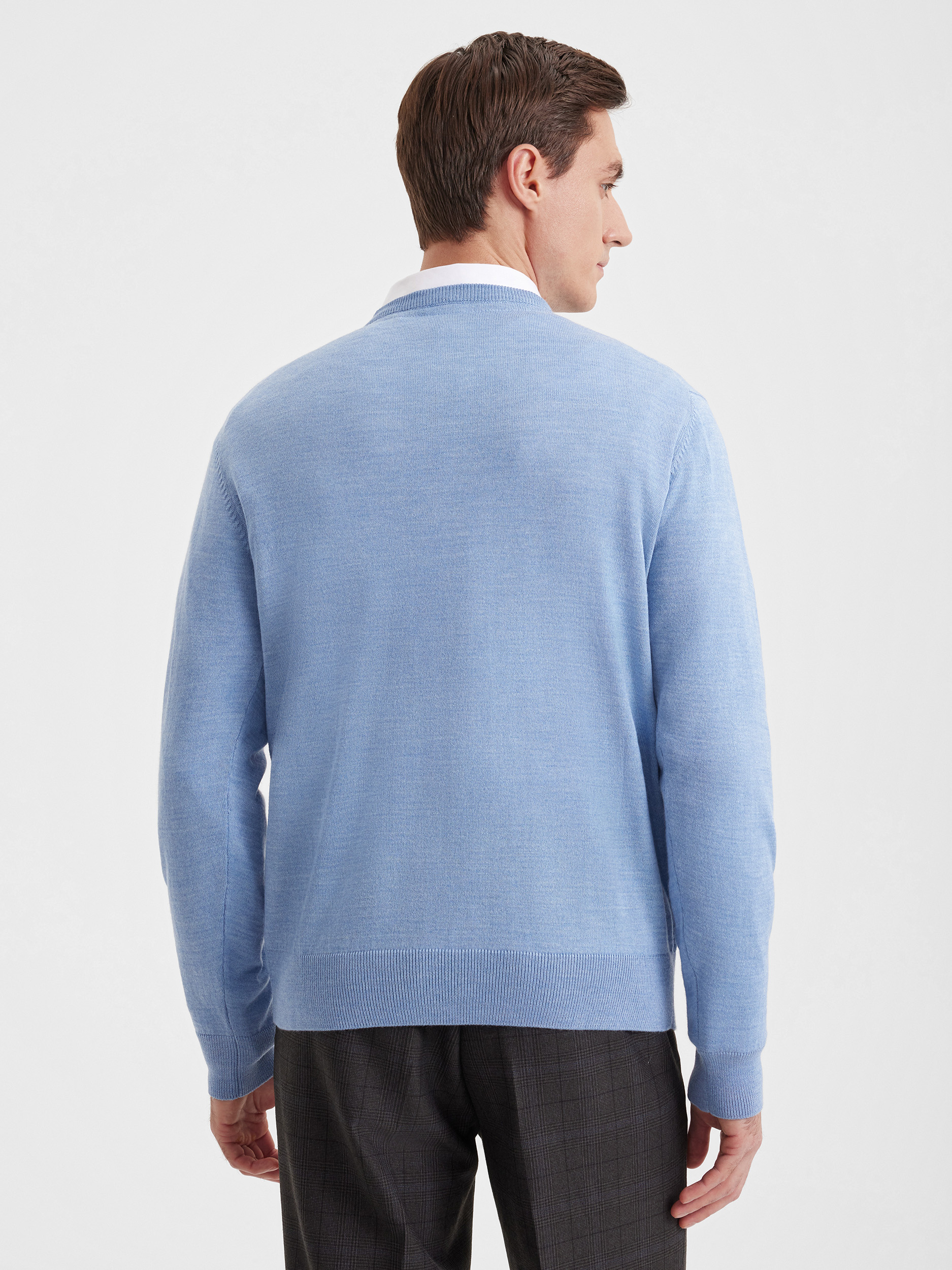 Тонкий класический джемпер из смесового трикотажа. В составе тонкая шерсть мериносовых овец и акрил. Круглый вырез, прямой рукав. Универсальная модель в урбанистическом стиле, базовая вещь для создания стильных повседневных аутфитов для офиса, прогулок и путешествий.