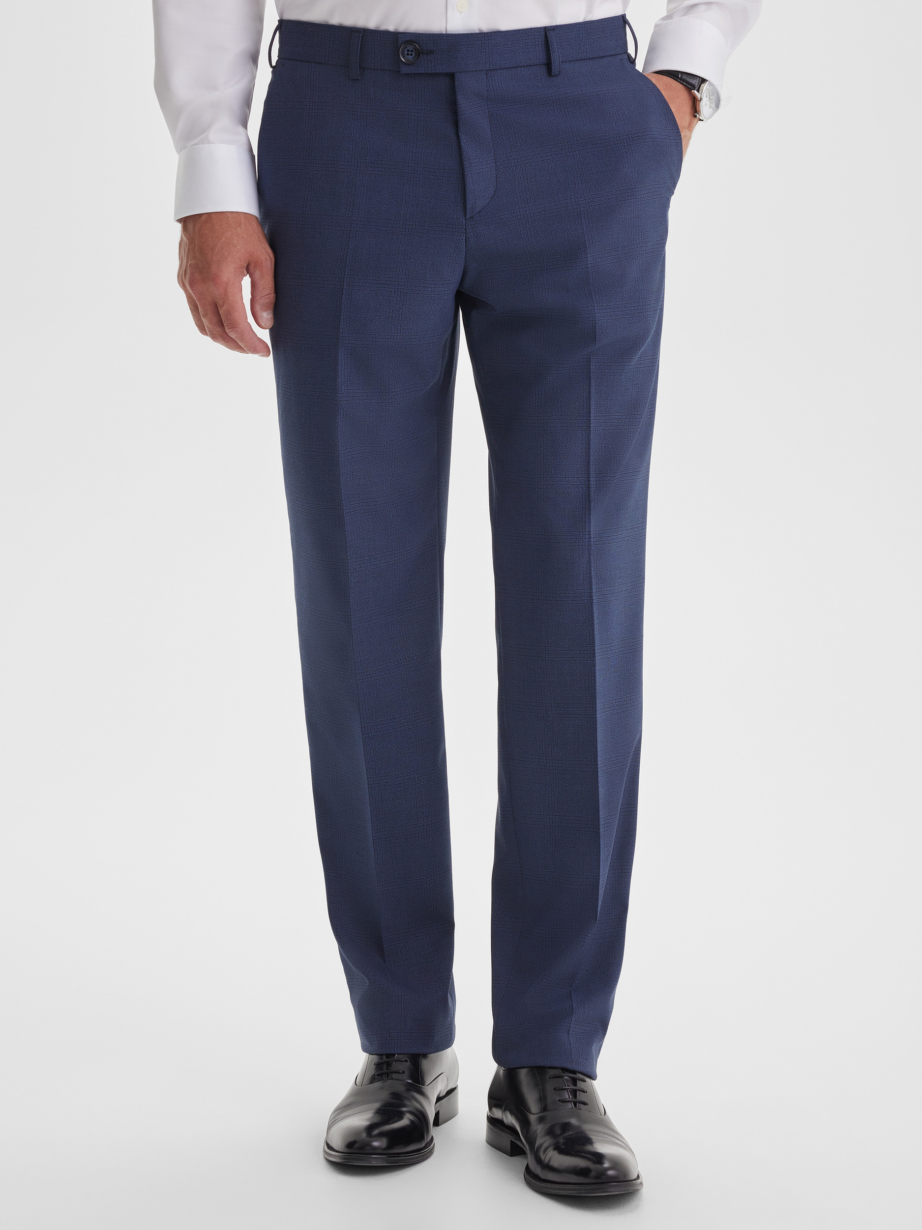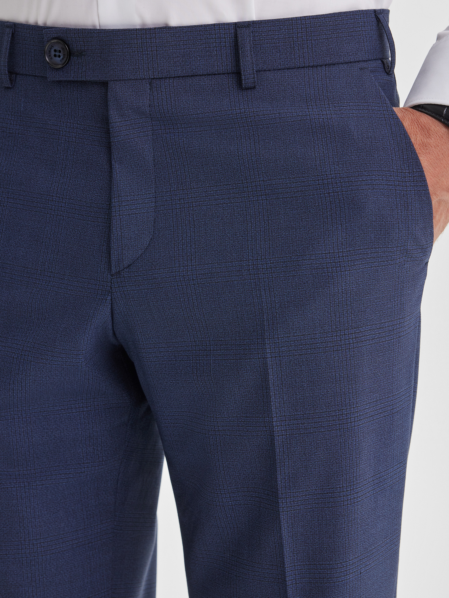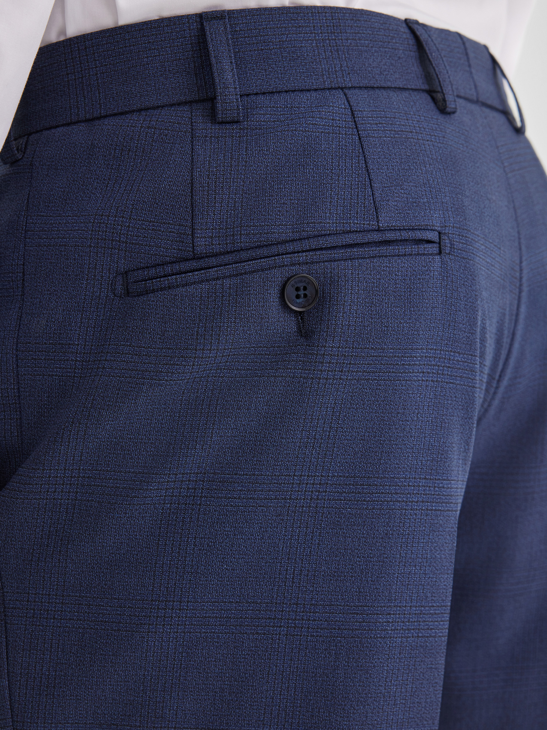Классические брюки силуэта REGULAR, выполненные из ткани с деликатной неявной клеткой в синих оттенках. Модель отличается удобной посадкой и прямым кроем, который обеспечивает комфорт и свободу движений в течение всего дня. Брюки легко комбинируются с пиджаком из комплекта, создавая цельный деловой образ, но также могут быть самостоятельной частью гардероба в сочетании с сорочками или джемперами.
