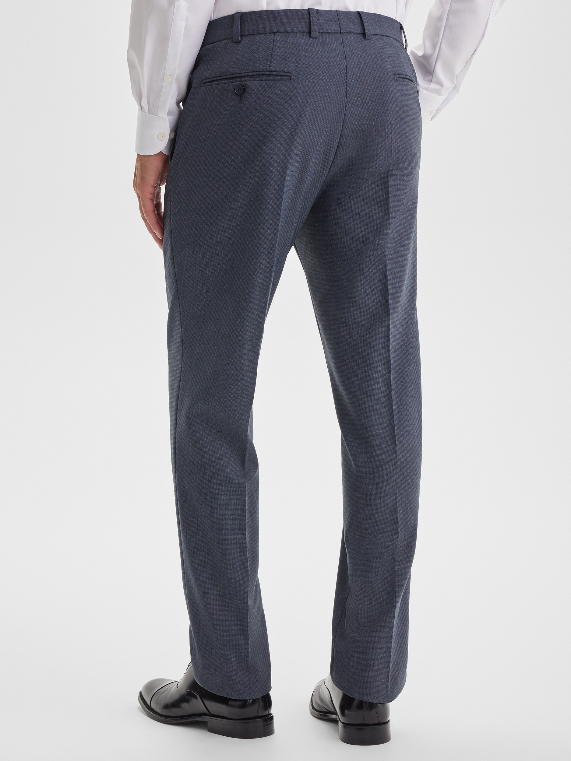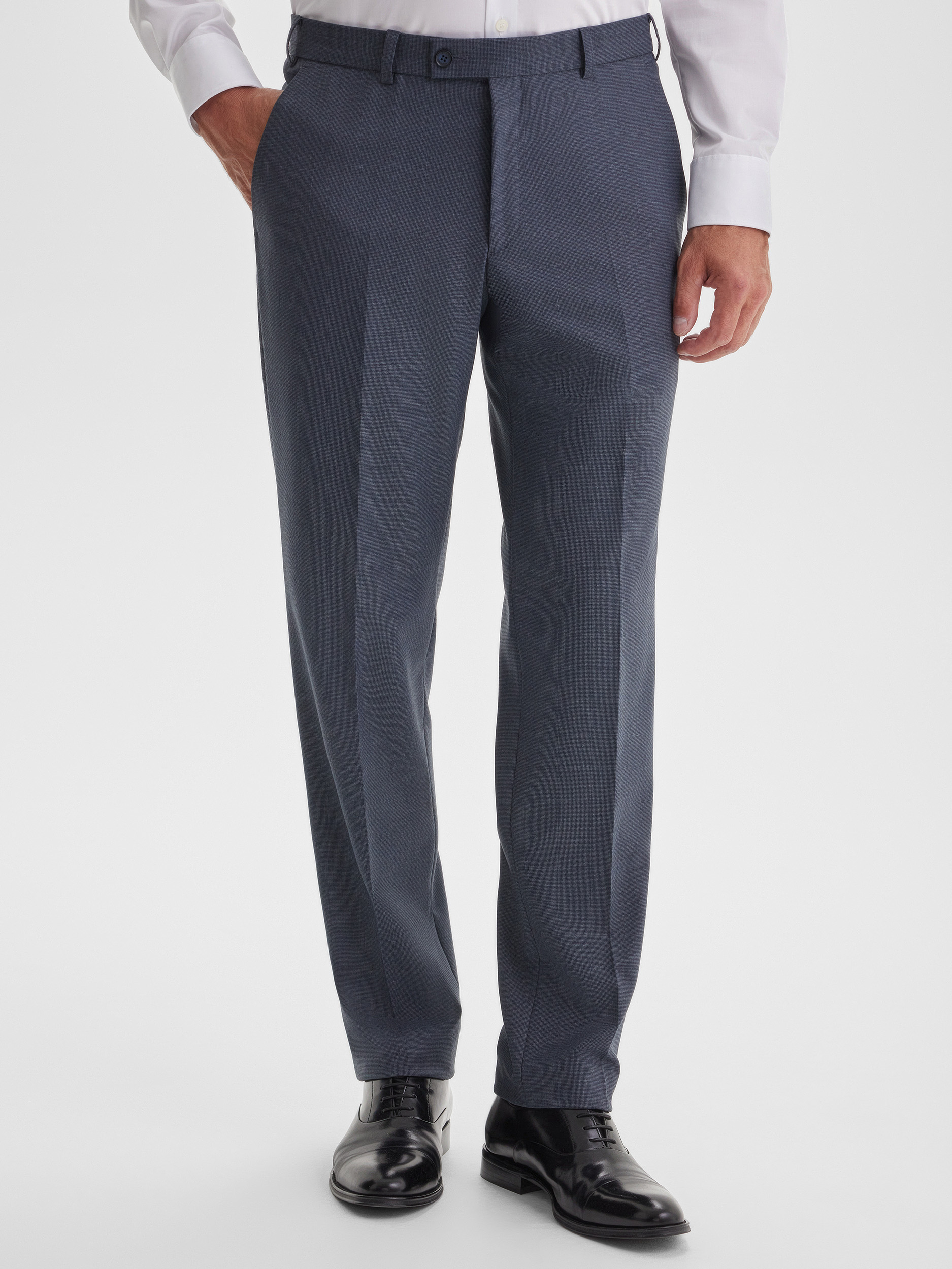 Прямые брюки из костюма со сложной серо-синей фактурой. Лаконичный крой и сдержанный дизайн делают их универсальной основой гардероба, подходящей как для офиса, так и для официальных мероприятий. Благодаря качественной ткани брюки хорошо держат форму, обеспечивая комфорт и аккуратный внешний вид на протяжении всего дня.