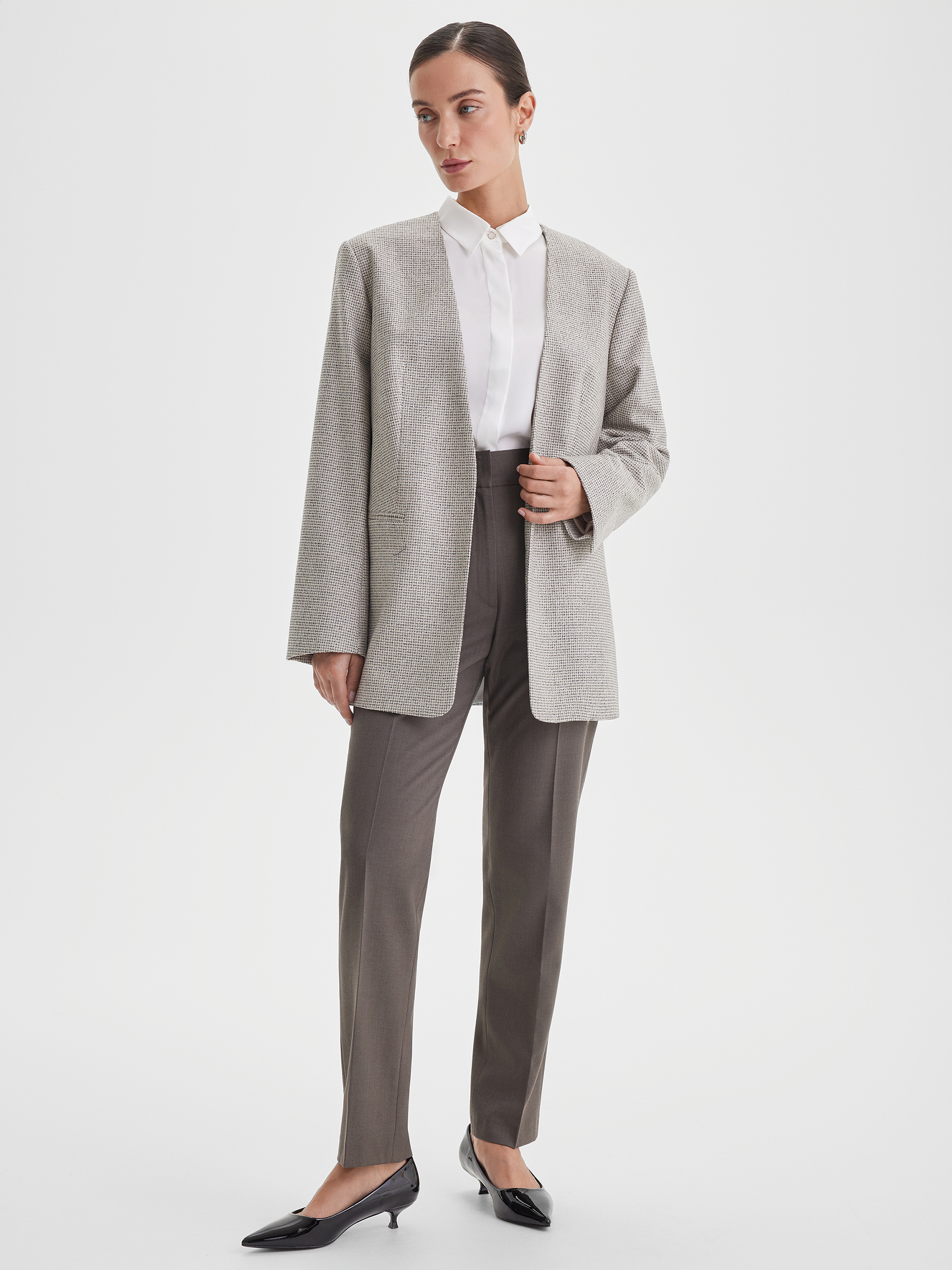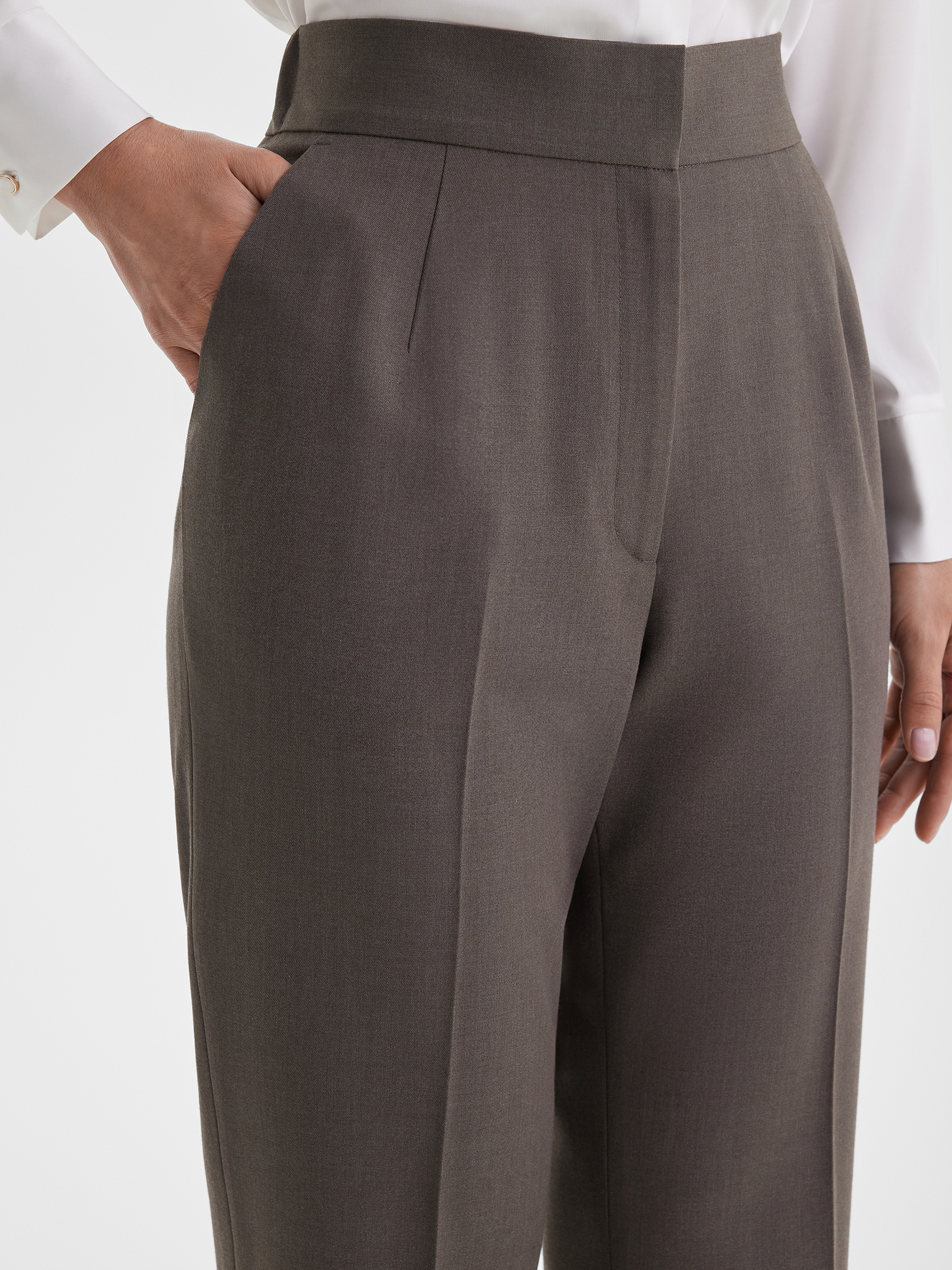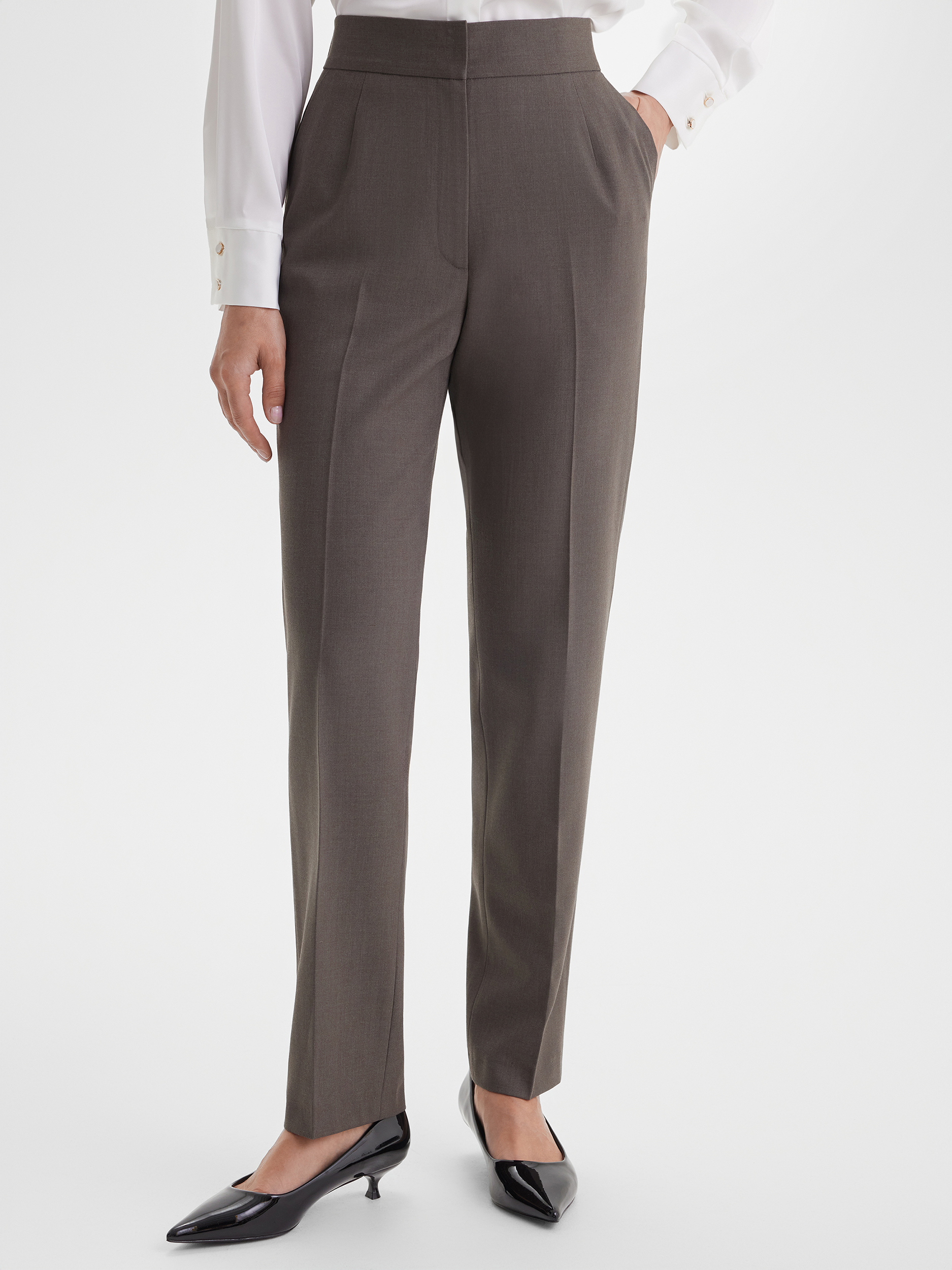 Брюки слим в оливково-бежевом оттенке, созданные для гармоничного и современного образа. Узкий силуэт подчёркивает линии фигуры, а универсальный цвет легко сочетается с жакетами, блузками и другими элементами гардероба.