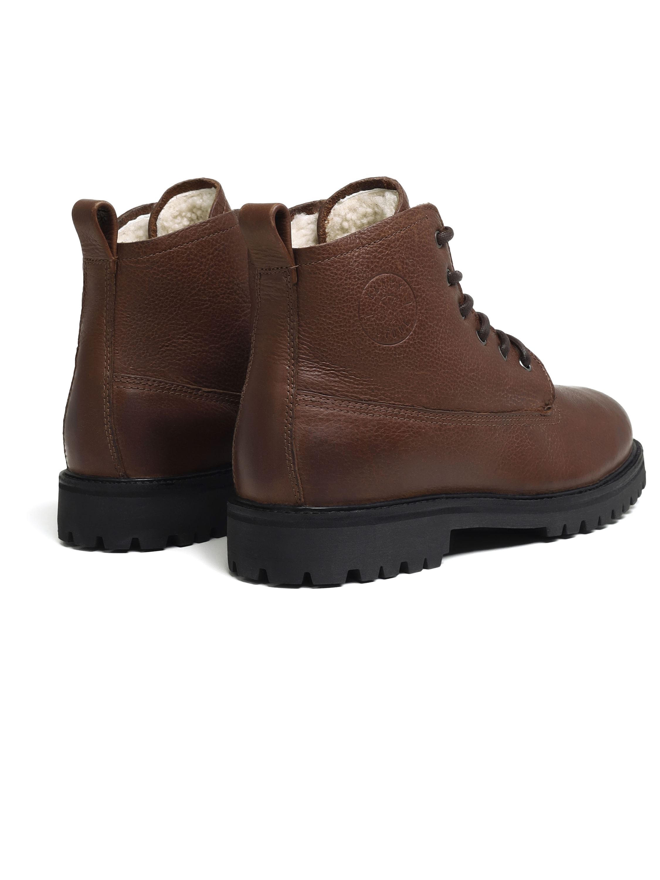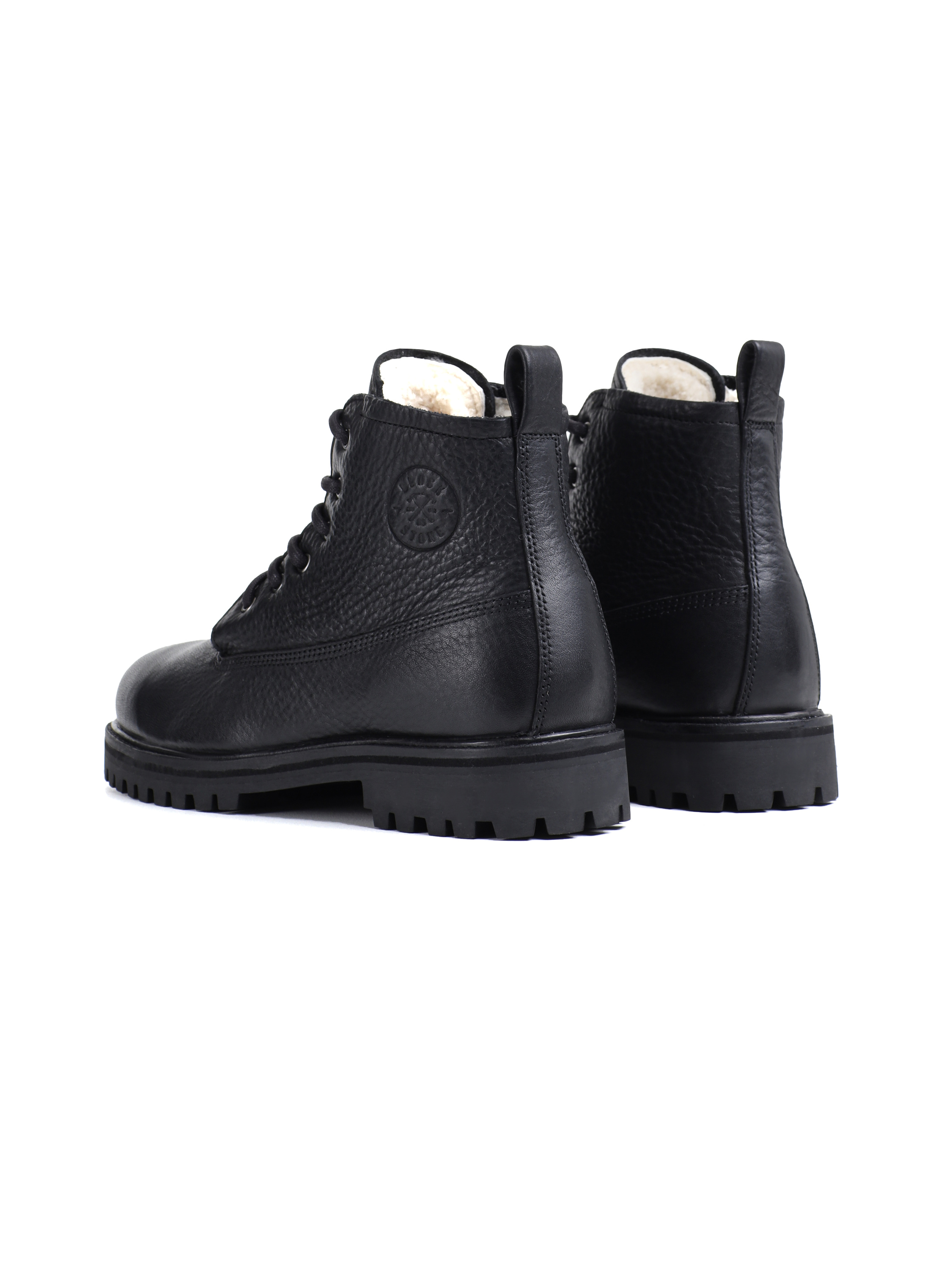 Стельки и внутренняя отделка выполнены из 100% австралийской овчины. Натуральная овчина прекрасно сохраняет тепло, поддерживает естественную терморегуляцию и позволяет ногам оставаться сухими в холодную погоду. Съёмные меховые стельки легко вынуть для сушки или заменить на ортопедические.